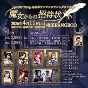 梅田BANGBOO 04.11(Sat) ophelia 20mg 16周年ワンマン カウントダウン企画 「魔女からの招待状」【配信あり】