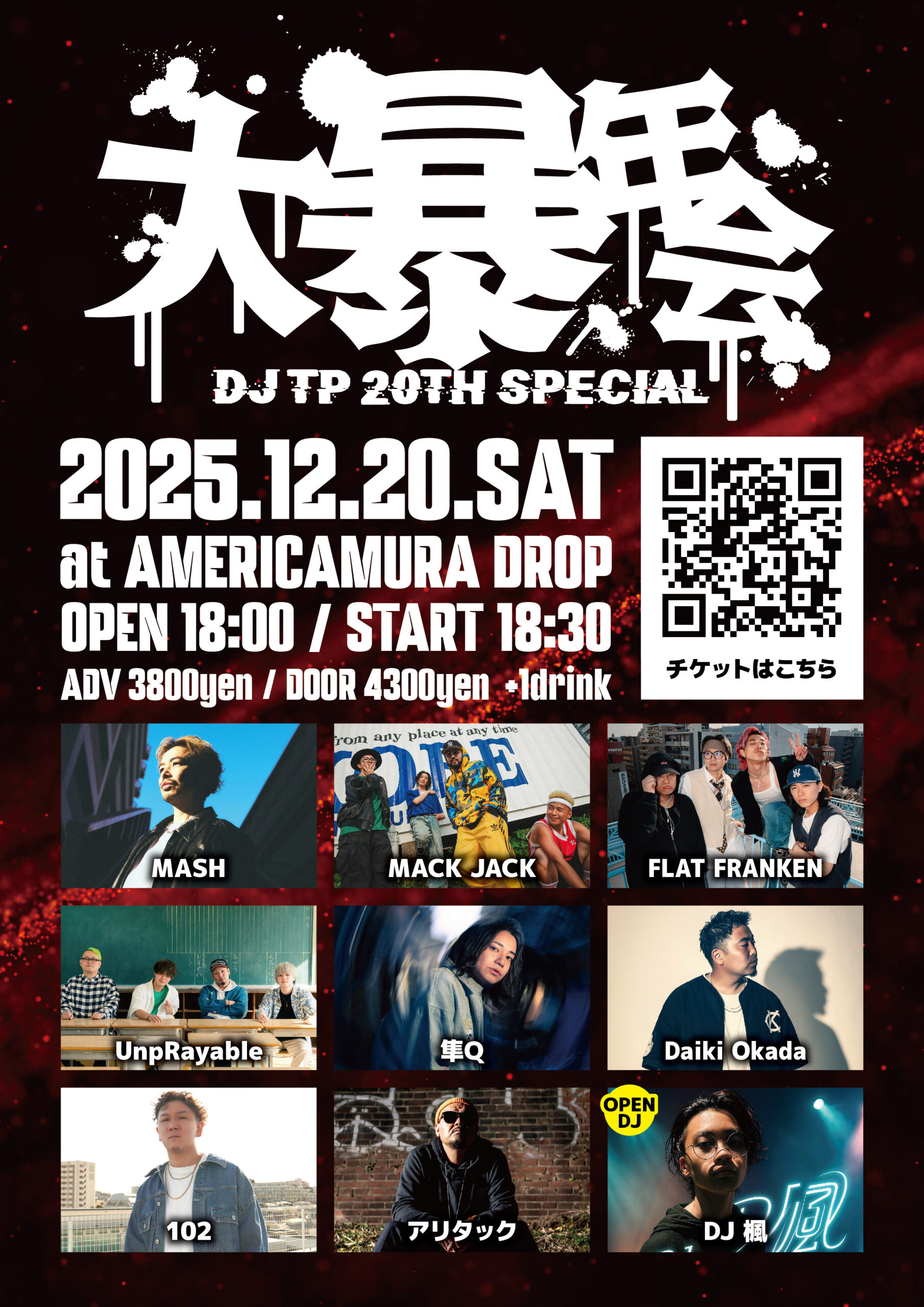 12.21(Sun) USED2TheCORE TOUR 大阪SERIES DAY.2 アメリカ村DROP X Facebook LINE コピー 2025.10.252025.11.20 ACTUZMK / ROTTENGRAFFTY イベント詳細 アメリカ村 DROP(ドロップ)|大阪 心斎橋アメ村のライブハウスベースオントップグループのライブハウス『アメリカ村 DROP(ドロップ)』大阪アメリカ村の中心地にあるライブハウスです。