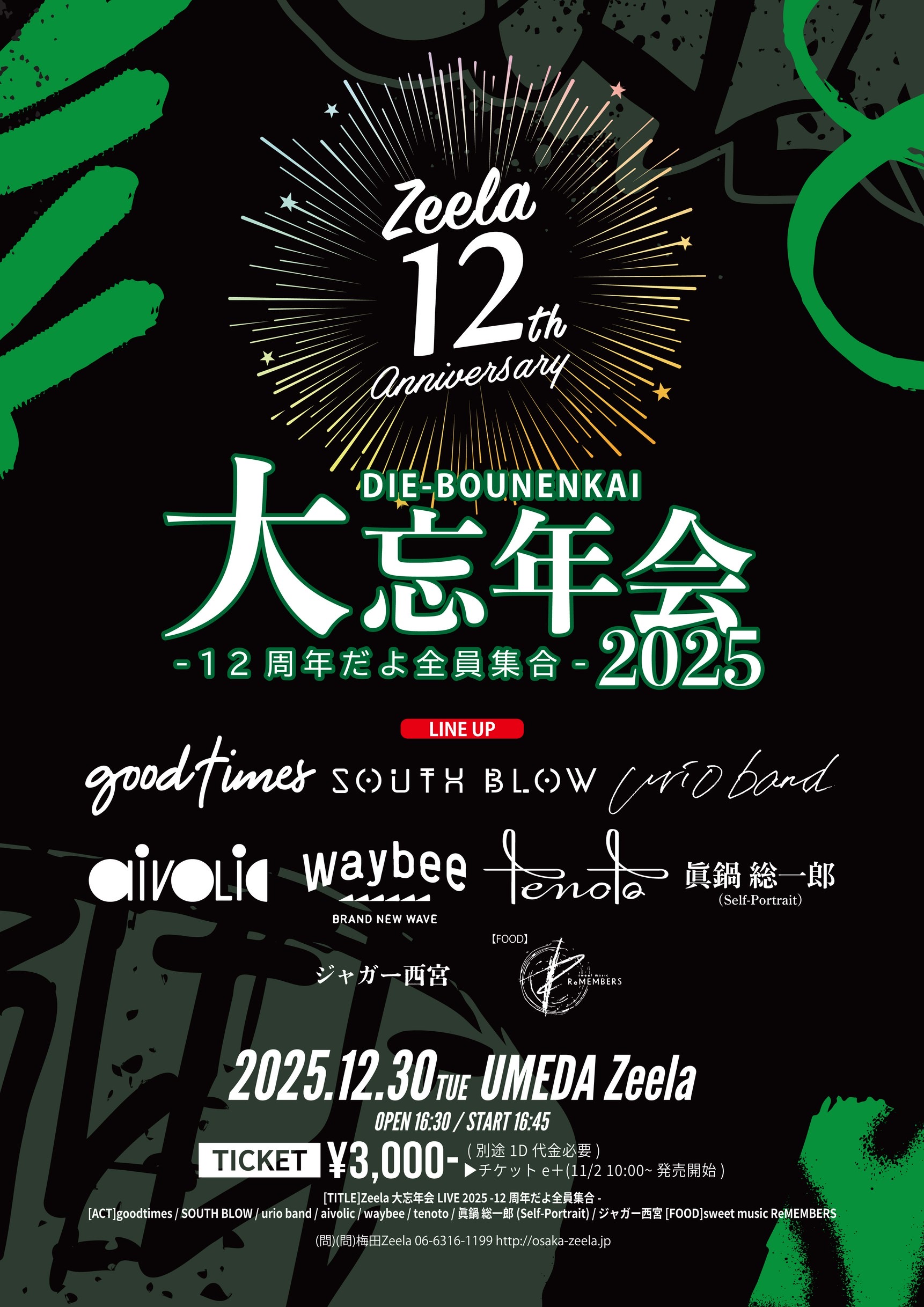aivolic / goodtimes / SOUTH BLOW / tenoto / urio band / waybee / 眞鍋 総一郎(Self-Portrait) / ジャガー西宮 / 【FOOD】sweet music ReMEMBERS