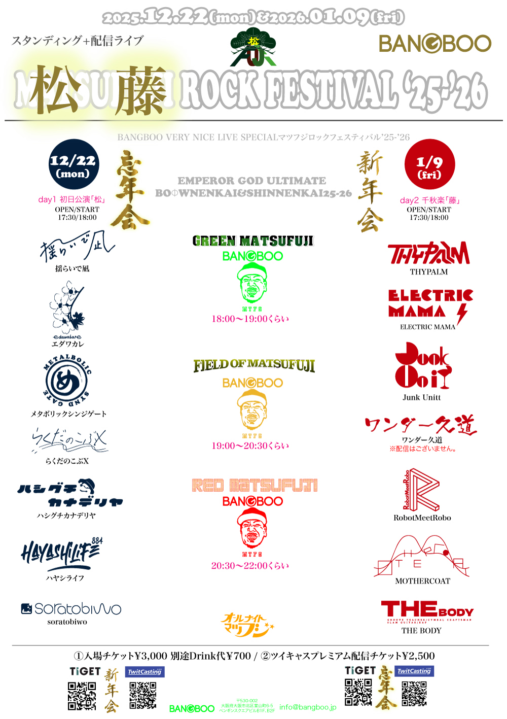 エダワカレ / soratobiwo / ハシグチカナデリヤ / ハヤシライフ / メタボリックシンジゲート / らくだのこぶX / 揺らいで凪 / <50音順>