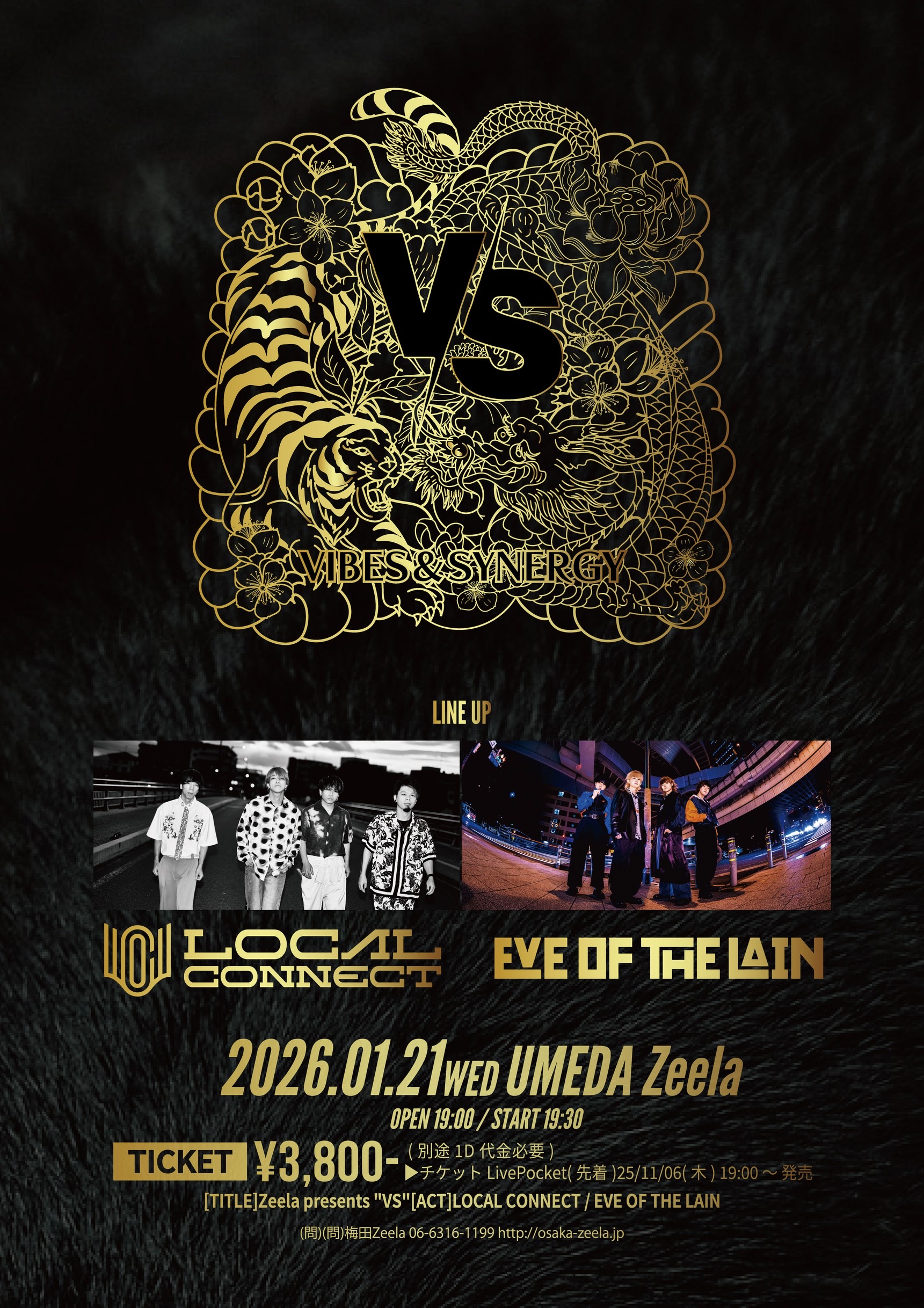 01.21(Wed) Zeela presents “VS” 梅田Zeela X Facebook LINE コピー 2025.11.11 ACTLOCAL CONNECT / EVE OF THE LAIN イベント詳細 梅田 Zeela|大阪 梅田のライブハウス大阪梅田のライブハウス Zeela(ジーラ)!ベースオントップグループ8軒目となるライブハウスです。