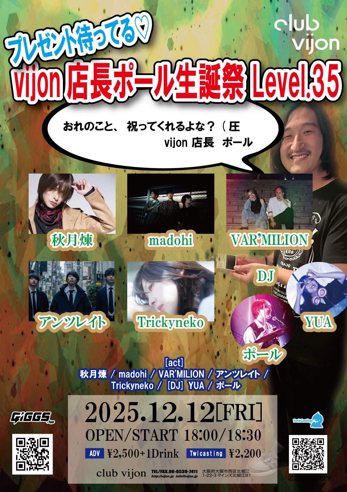 秋月煉 / madohi / VAR’MILION / アンツレイト / Trickyneko / [DJ] YUA / ポール