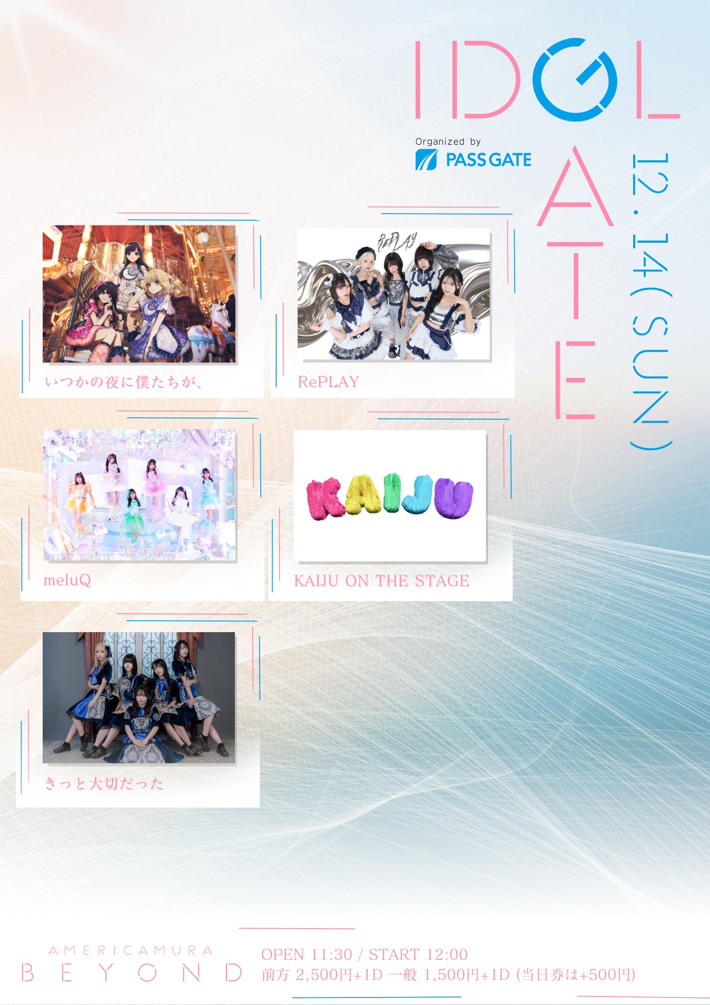 12.14(Sun) IDOL GATE in BEYOND アメリカ村BEYOND X Facebook LINE コピー 2025.11.24 ACTいつかの夜に僕たちが / RePLAY / KAIJU ON THE STAGE / meluQ / きっと大切だった イベント詳細 アメリカ村 BEYONDベースオントップグループのライブハウス『アメリカ村 BEYOND(ビヨンド)』大阪アメリカ村の中心地にあるライブハウスです。