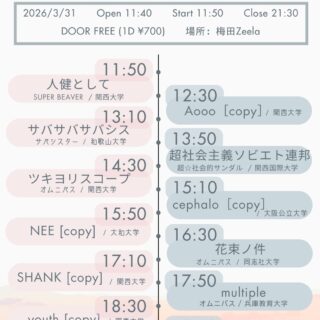 04.04(Sat) 「DAIDA LAIDA 2026~BoN To Be Wild~」 心斎橋VARON X Facebook LINE コピー 2025.12.04 ACTDAIDA LAIDA イベント詳細 心斎橋 VARON(ヴァロン)|大阪 心斎橋のライブハウス大阪にあるライブハウス「心斎橋VARON」アーティストのパフォーマンスを最大限に引き出すことをコンセプトにしたステージ・音響・照明。ジャンルや形態を超え、様々なイベントに完全対応いたします。音楽スタジオベースオントップ併設。