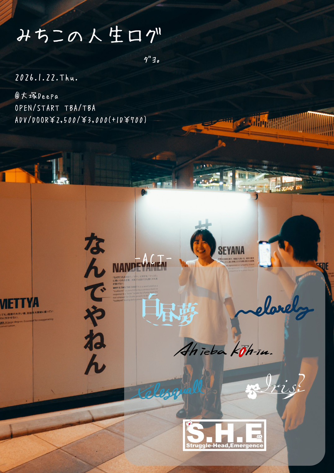 01.22(Thu) 「みちこの人生ログ」 大塚Deepa X Facebook LINE コピー 2025.12.04 ACT白昼夢 / melarely / I r i s ? / Ah ieba köh-iu. / S.H.E / telesquall イベント詳細 大塚Deepa|東京 大塚のライブハウスベースオントップグループのライブハウス『大塚Deepa』東京山手線大塚駅徒歩1分!!にあるライブハウス/クラブです。
