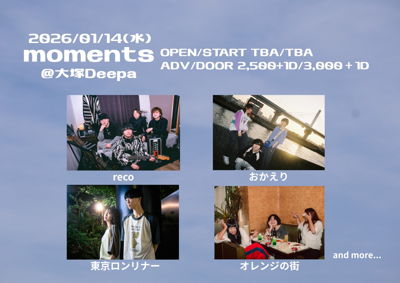 01.14(Wed) moments 3週連続企画 大塚Deepa X Facebook LINE コピー 2025.12.07 ACTおかえり / オレンジの街 / reco / 東京ロンリナー イベント詳細 大塚Deepa|東京 大塚のライブハウスベースオントップグループのライブハウス『大塚Deepa』東京山手線大塚駅徒歩1分!!にあるライブハウス/クラブです。