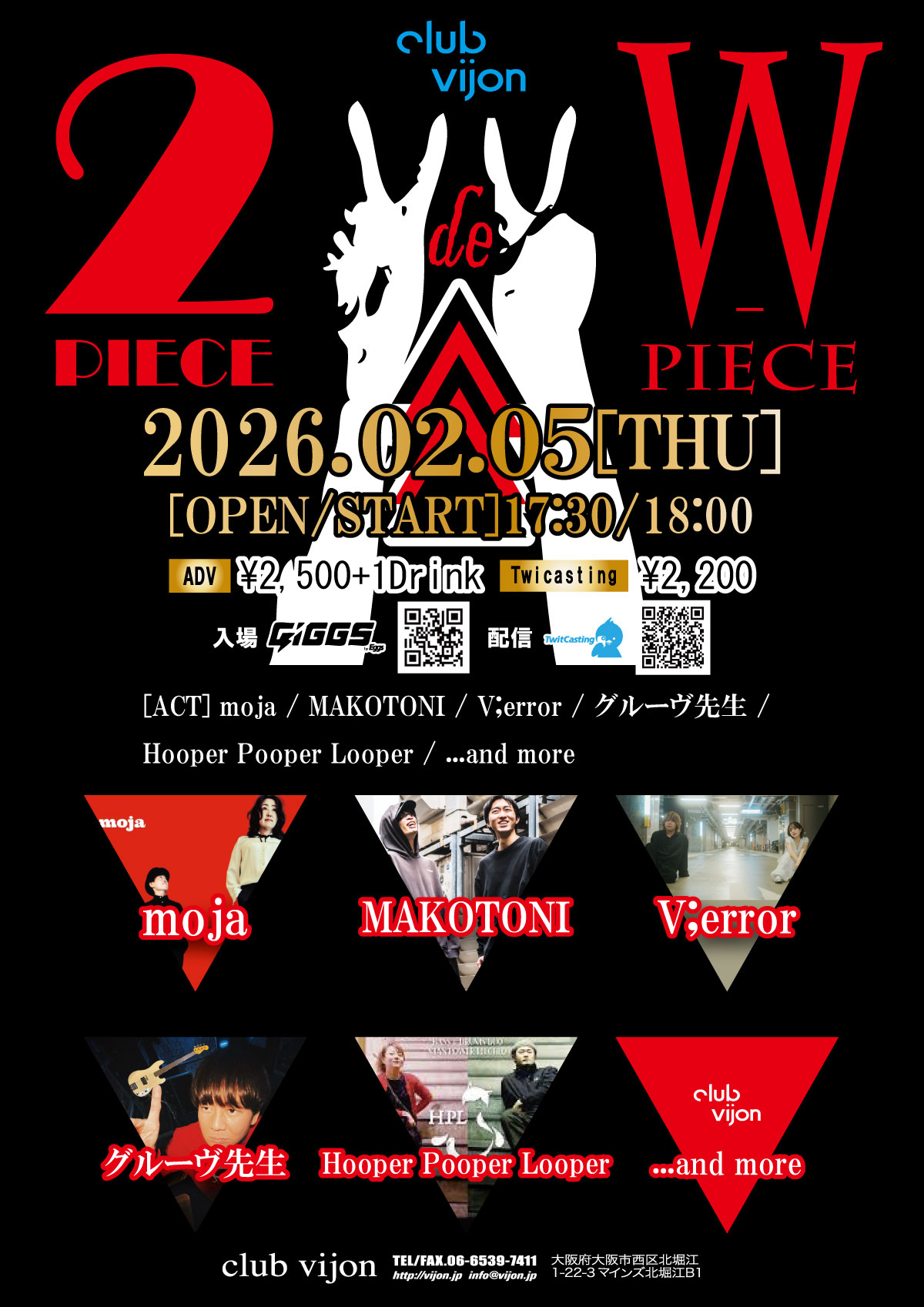 02.03(Tue) 千春企画【外は冷えどもたくさんの春】【配信あり】 北堀江 club vijon X Facebook LINE コピー 2025.12.15 ACTアシガルユース / ザ / ハウル / ノーサイド / アウトサイダー / …and more イベント詳細 北堀江 club vijon(クラブビジョン)|大阪 北堀江のライブハウスベースオントップグループのライブハウス『北堀江club vijon』大阪北堀江にあるライブハウスです。