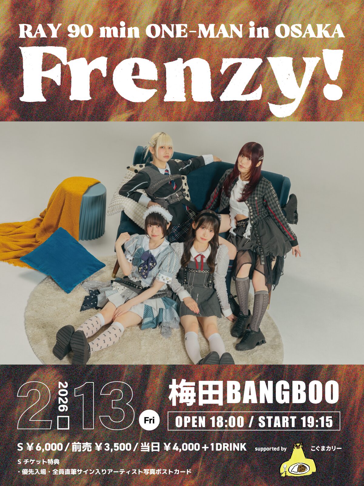 02.13(Fri) RAY 90 min ONE-MAN in OSAKA 「Frenzy!」 梅田BANGBOO X Facebook LINE コピー 2025.12.15 ACTRAY イベント詳細 梅田 BANGBOOベースオントップグループのライブハウス『梅田 BANGBOO(ウメダバンブー)』大阪梅田にあるライブハウスです。
