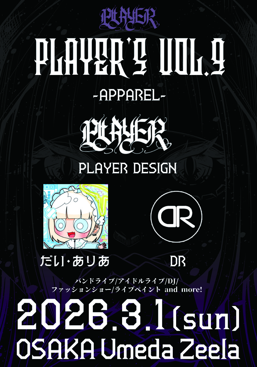 03.01(Sun) PLAYER’S VOL.9 梅田Zeela X Facebook LINE コピー 2025.12.23 ACT バンドライブ / アイドルライブ / DJ / ファッションショー / ライブペイント / and more! イベント詳細 梅田 Zeela|大阪 梅田のライブハウス大阪梅田のライブハウス Zeela(ジーラ)!ベースオントップグループ8軒目となるライブハウスです。