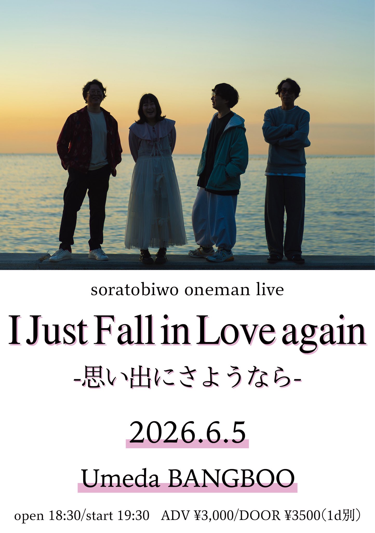 06.05(Fri) soratobiwo oneman live 『I Just Fall in Love again/思い出にさようなら』【配信あり】 梅田BANGBOO X Facebook LINE コピー 2025.12.232026.03.25 ACT soratobiwo イベント詳細 梅田 BANGBOOベースオントップグループのライブハウス『梅田 BANGBOO(ウメダバンブー)』大阪梅田にあるライブハウスです。