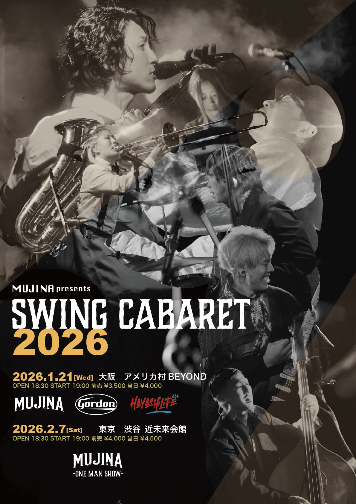 01.21(Wed) MUJINA presents. 「SWING CABARET 2026 Osaka」 アメリカ村BEYOND X Facebook LINE コピー 2025.12.272025.12.28 ACT MUJINA / Gordon / ハヤシライフ イベント詳細 アメリカ村 BEYONDベースオントップグループのライブハウス『アメリカ村 BEYOND(ビヨンド)』大阪アメリカ村の中心地にあるライブハウスです。
