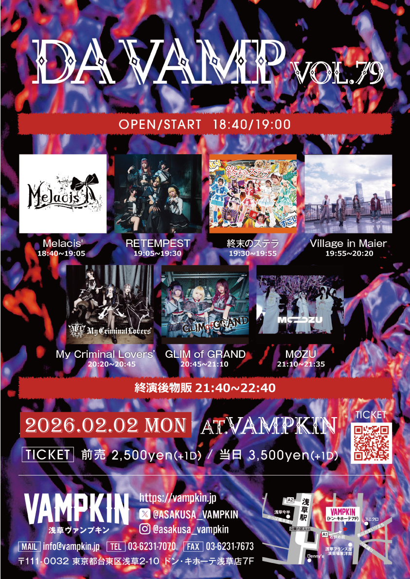 浅草VAMPKINMelacis’ / RETEMPEST / 終末のステラ / Village in Maier / My Criminal Lovers’ / GLIM of GRAND / MØZU