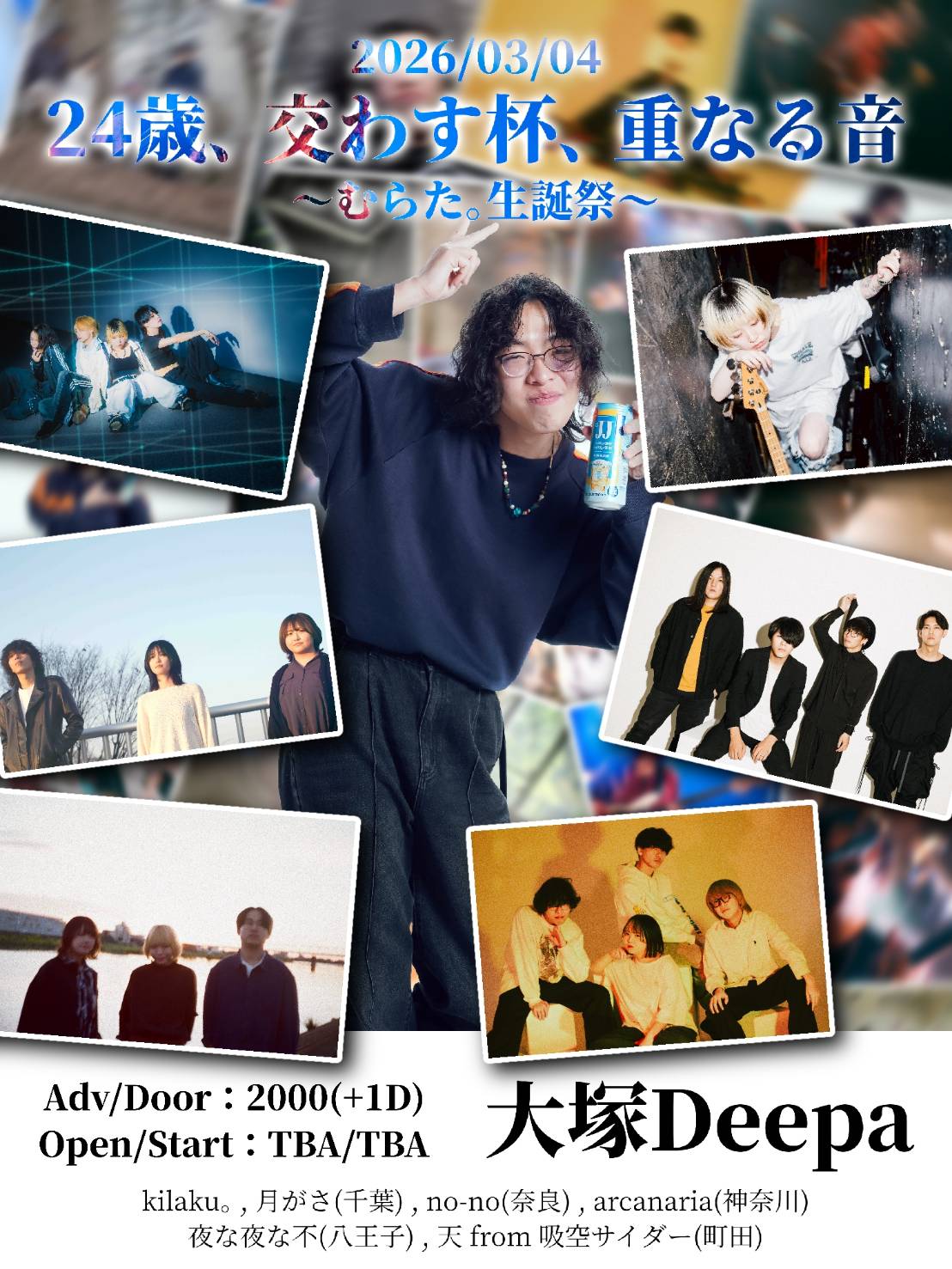 03.03(Tue) 阿部 シュン、「はじめてのせいたんさい」 大塚Deepa X Facebook LINE コピー 2026.01.18 ACT アルライト/白昼夢/oldflame/telesquall FOOD:高山クオリティー イベント詳細 大塚Deepa|東京 大塚のライブハウスベースオントップグループのライブハウス『大塚Deepa』東京山手線大塚駅徒歩1分!!にあるライブハウス/クラブです。