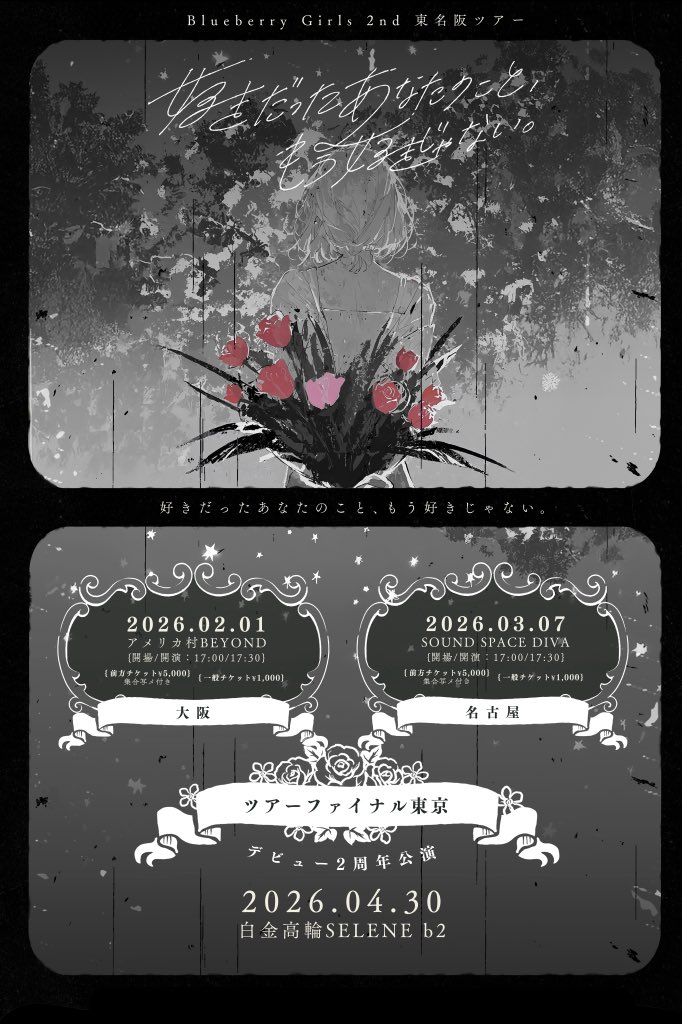 02.01(Sun) 好きだったあなたのこと、もう好きじゃない。大阪公演 アメリカ村BEYOND X Facebook LINE コピー 2026.01.20 ACT Blueberry Girls イベント詳細 アメリカ村 BEYONDベースオントップグループのライブハウス『アメリカ村 BEYOND(ビヨンド)』大阪アメリカ村の中心地にあるライブハウスです。