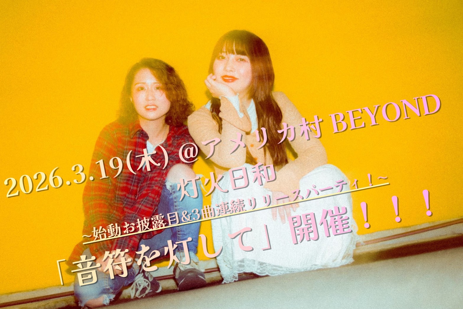 03.19(Thu) 『音符を灯して』灯火日和~始動お披露目&3曲連統リリースパーティ! アメリカ村BEYOND X Facebook LINE コピー 2026.01.20 ACT 灯火日和 / and more! イベント詳細 アメリカ村 BEYONDベースオントップグループのライブハウス『アメリカ村 BEYOND(ビヨンド)』大阪アメリカ村の中心地にあるライブハウスです。