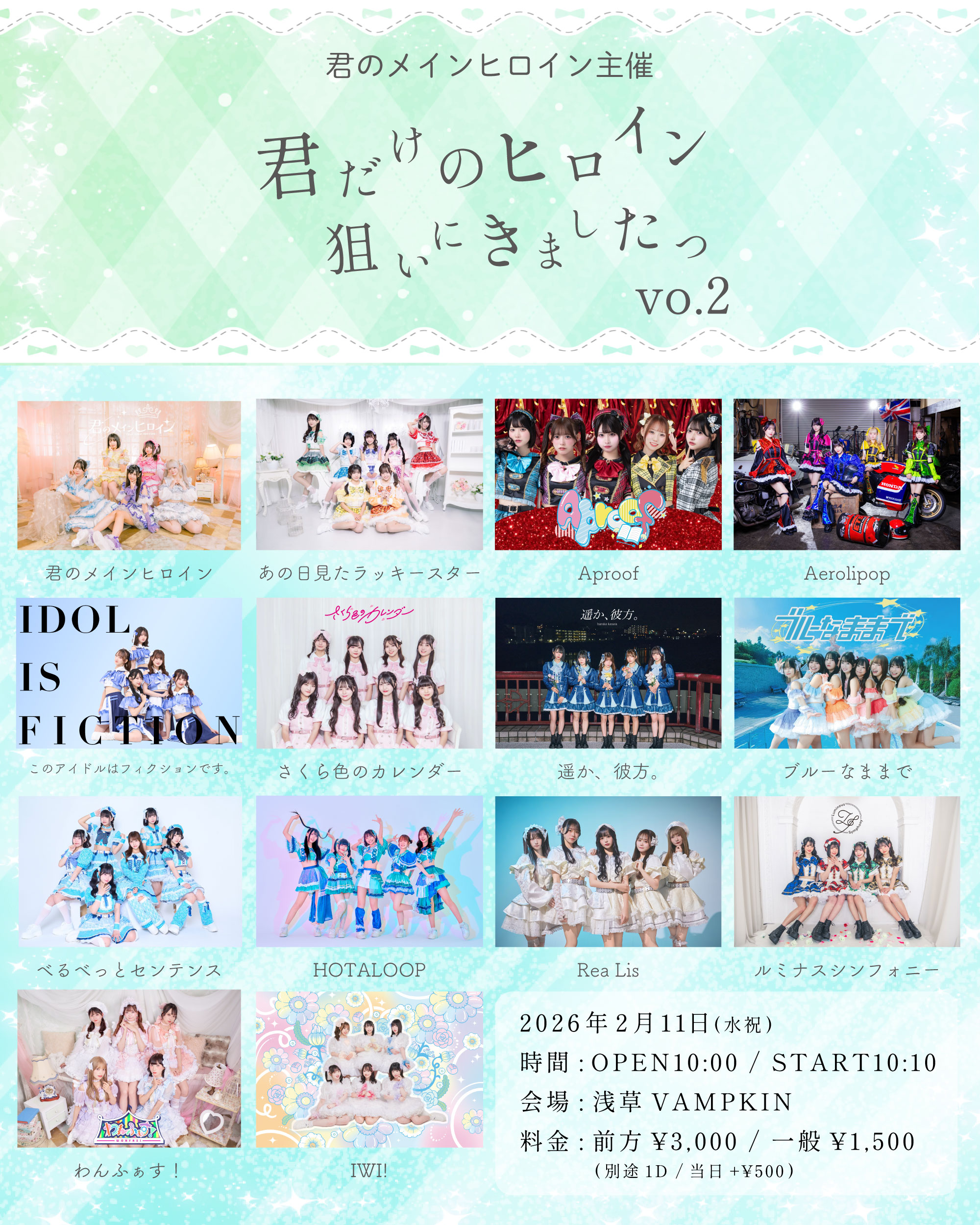 浅草VAMPKIN君のメインヒロイン / あの日見たラッキースター / Aproof / Aerolipop / このアイドルはフィクションです。 / さくら色のカレンダー / 遥か、彼方。 / ブルーなままで / べるべっとセンテンス / HOTALOOP / Rea Lis / ルミナスシンフォニー / わんふぁす! / IWI!