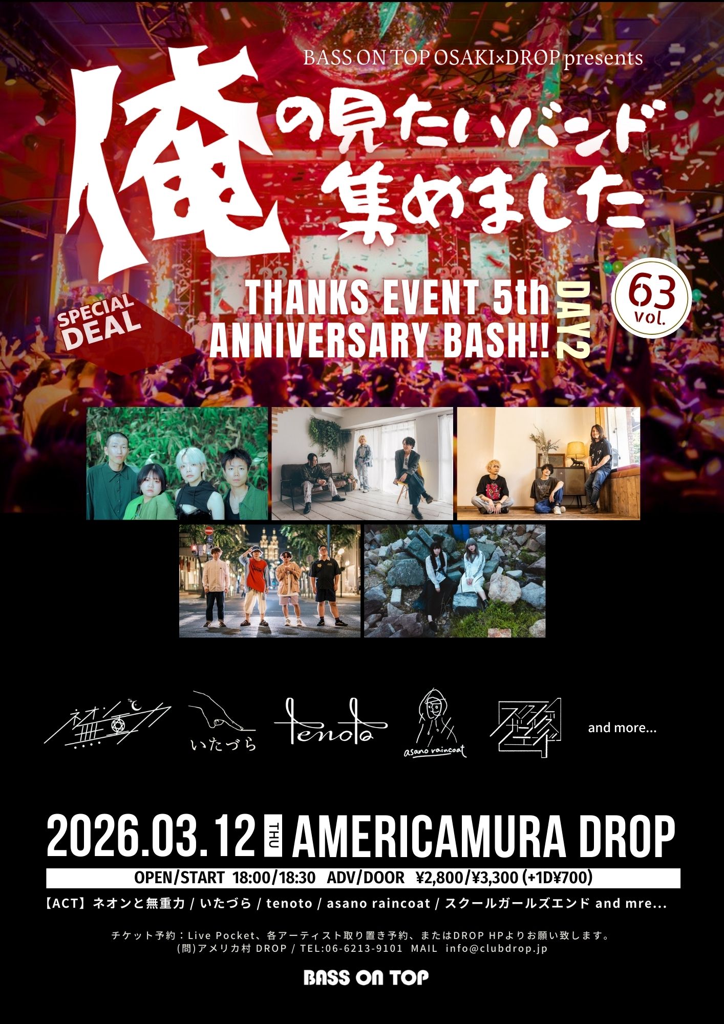 03.12(Thu) ANYDOUBT&BANGBOO pre.【still here】vol.1 梅田BANGBOO X Facebook LINE コピー 2026.01.26 ACT ANYDOUBT / DIVIBE / Exes on TV / 路地裏のバレリーナ / Telepathy / EMILY / Sezko イベント詳細 梅田 BANGBOOベースオントップグループのライブハウス『梅田 BANGBOO(ウメダバンブー)』大阪梅田にあるライブハウスです。