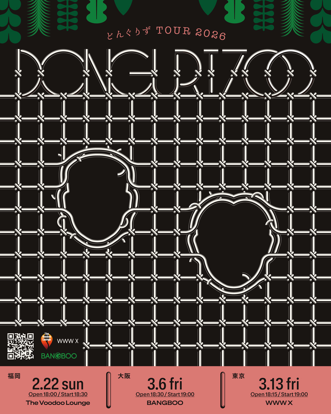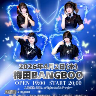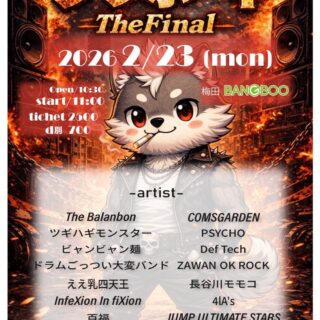 03.06(Fri) どんぐりず TOUR 2026「DONGURI ZOO」 梅田BANGBOO X Facebook LINE コピー 2026.02.01 ACT どんぐりず イベント詳細 梅田 BANGBOOベースオントップグループのライブハウス『梅田 BANGBOO(ウメダバンブー)』大阪梅田にあるライブハウスです。