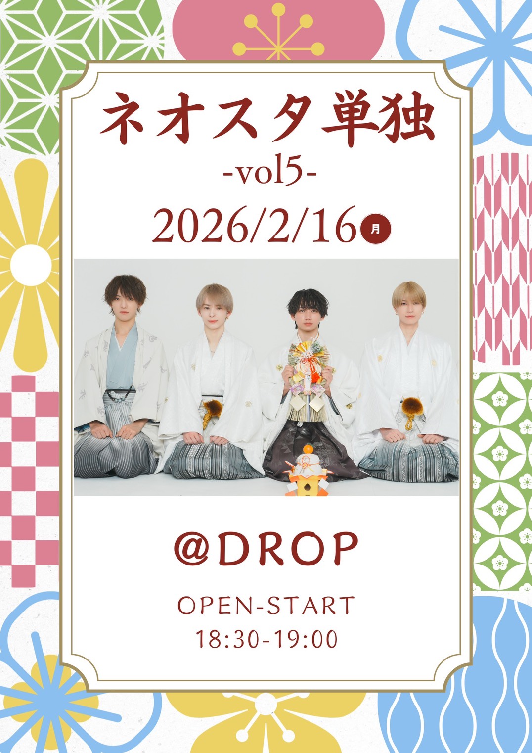 02.16(Mon) ネオスタ単独-vol5- アメリカ村DROP X Facebook LINE コピー 2026.02.03 ACT NeoAster イベント詳細 アメリカ村 DROP(ドロップ)|大阪 心斎橋アメ村のライブハウスベースオントップグループのライブハウス『アメリカ村 DROP(ドロップ)』大阪アメリカ村の中心地にあるライブハウスです。