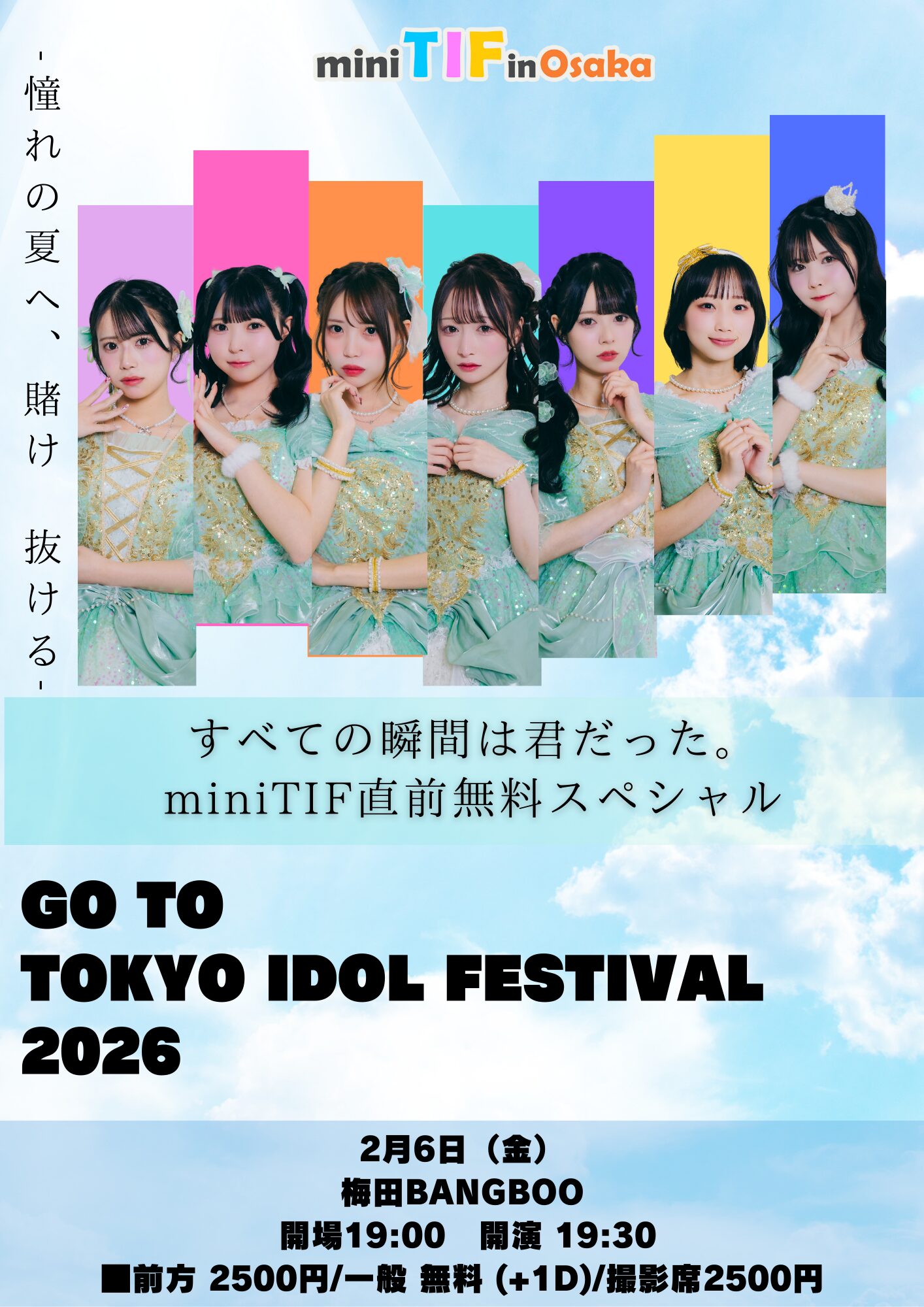 02.06(Fri) すべての瞬間は君だった。miniTIF直前無料スペシャル 梅田BANGBOO X Facebook LINE コピー 2026.02.03 ACT すべての瞬間は君だった。 イベント詳細 梅田 BANGBOOベースオントップグループのライブハウス『梅田 BANGBOO(ウメダバンブー)』大阪梅田にあるライブハウスです。