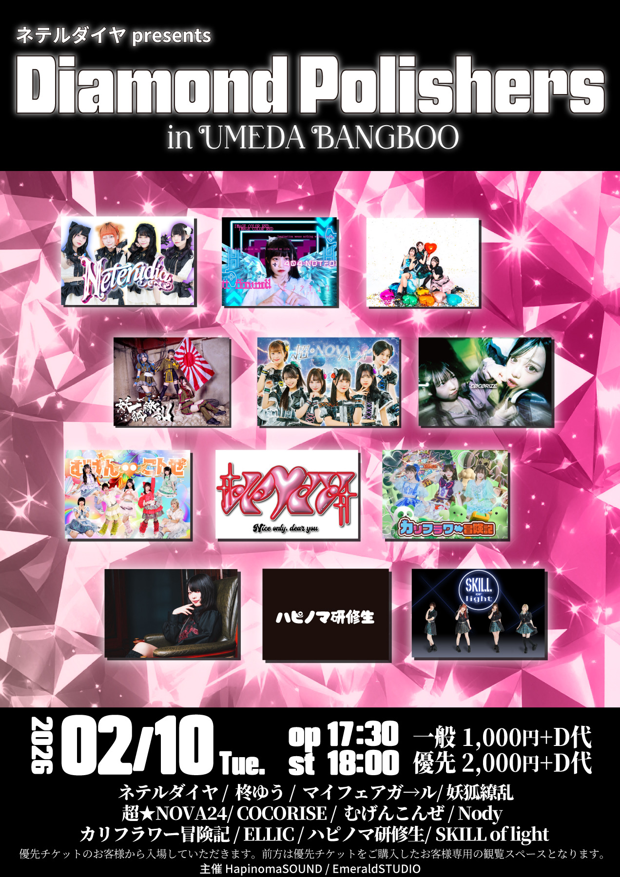 梅田BANGBOOネテルダイヤ、skill of light、むげんこんぜ、マイフェアガール、カリフラワー冒険記、ハピノマ研修生、COCORIZE、ELLIC、柊ゆう、Nody、妖狐繚乱、超★NOVA24、