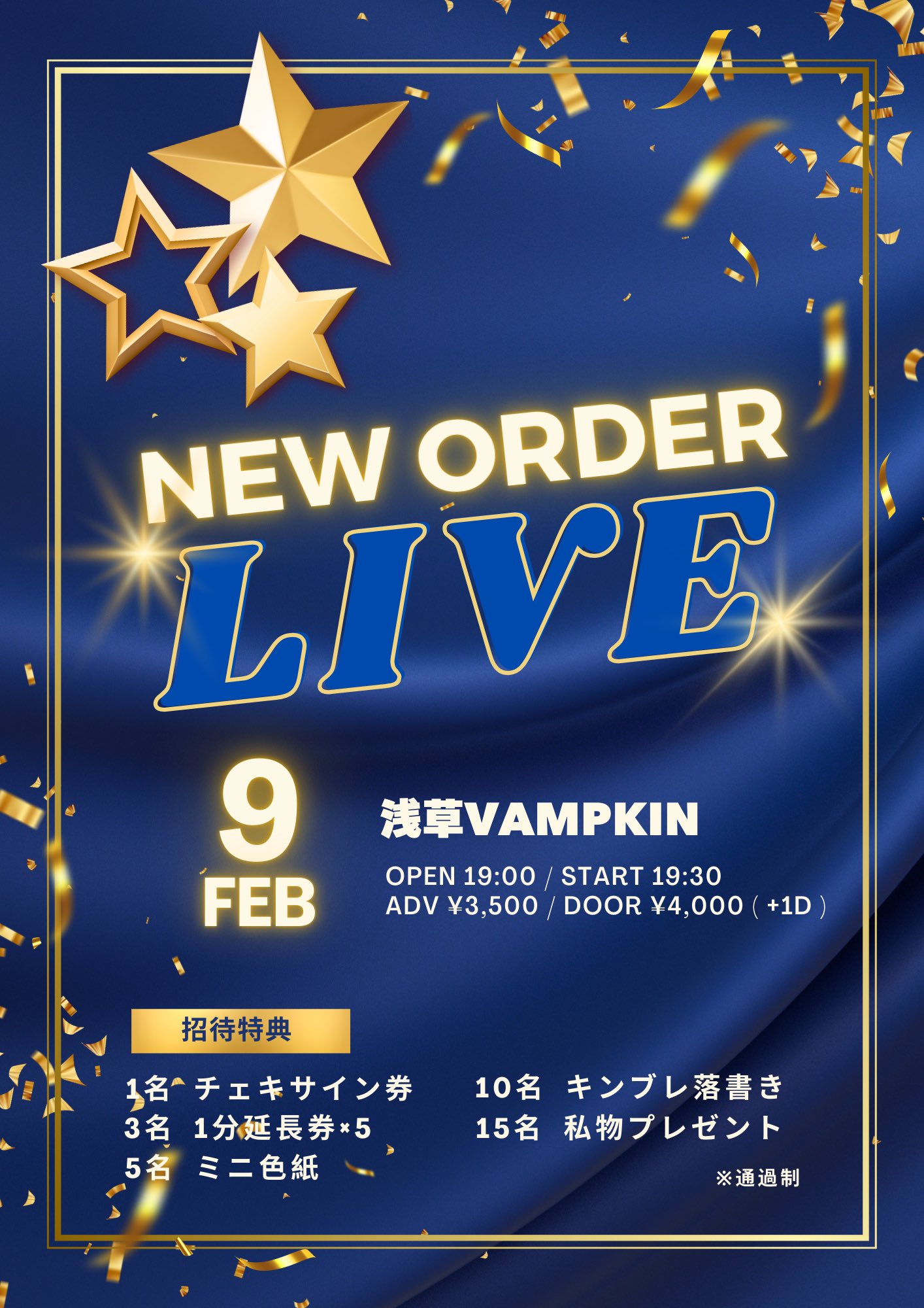 02.09(Mon) NEWORDER LIVE 浅草VAMPKIN X Facebook LINE コピー 2026.02.06 ACT HANA+KAZE イベント詳細 浅草 VAMPKINベースオントップグループのライブハウス『浅草 VAMPKIN(アサクサ ヴァンプキン)』東京浅草にあるライブハウスです。