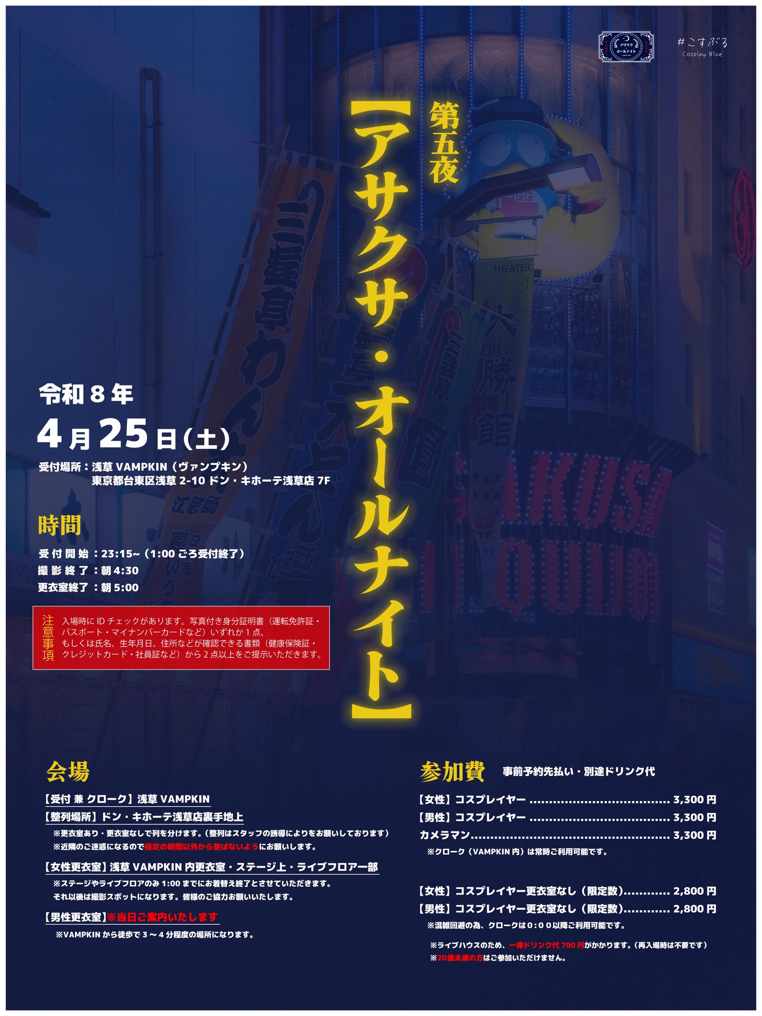 04.25(Sat) 第五夜【アサクサ・オールナイト】 浅草VAMPKIN X Facebook LINE コピー 2026.02.06 イベント詳細 浅草 VAMPKINベースオントップグループのライブハウス『浅草 VAMPKIN(アサクサ ヴァンプキン)』東京浅草にあるライブハウスです。