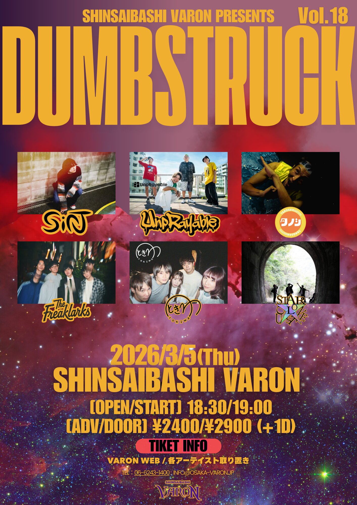 心斎橋VARONUnpRayable / タノシ / ときわ / SiNT / Stardust Alone / The Freaklarks