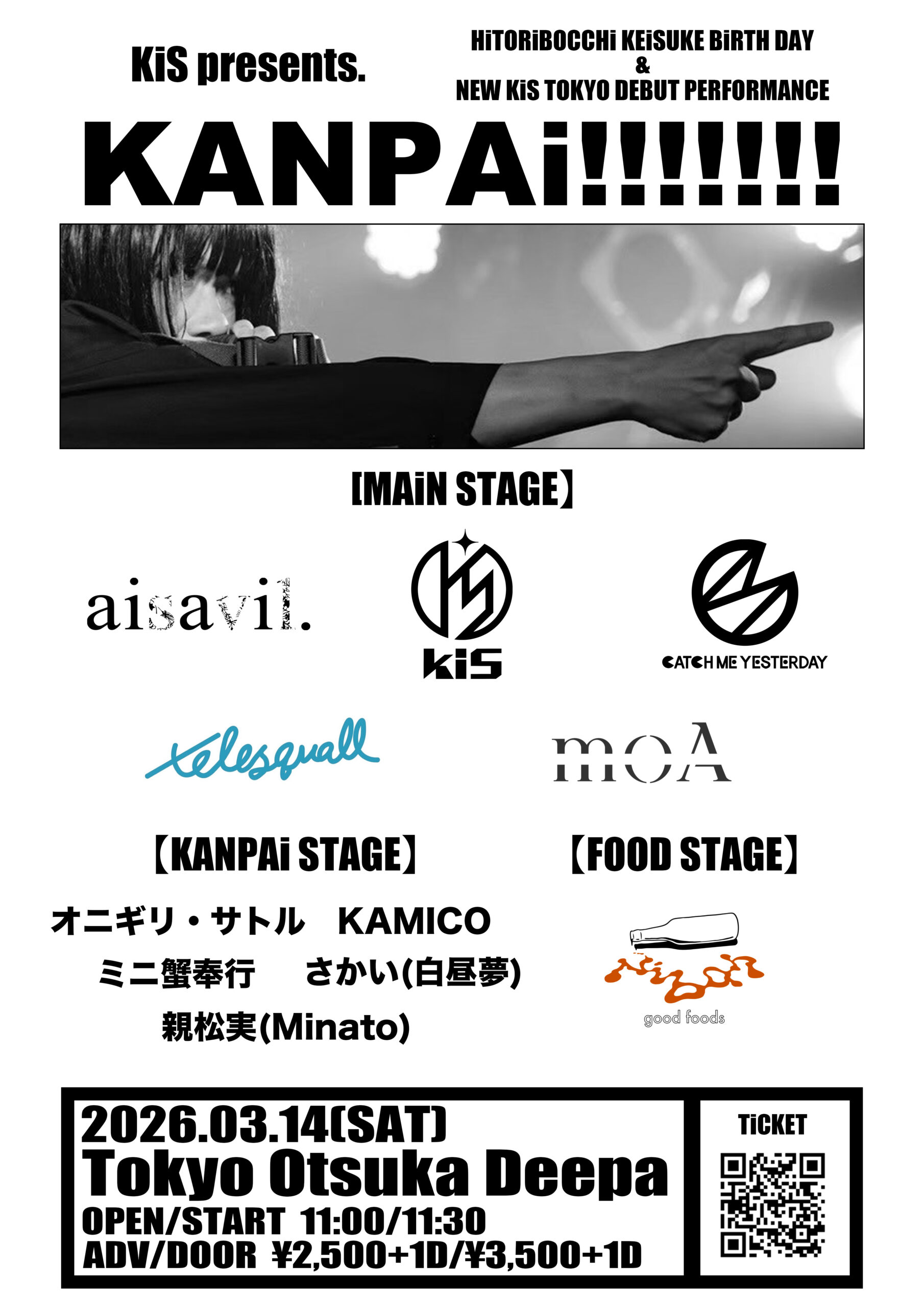 大塚Deepa【ACT】 [MAiN STAGE] KiS/aisavil./CATCH ME YESTERDAY/telesquall/moA [KANPAi STAGE] オニギリ・サトル/KAMICO/ミニ 蟹奉行/さかい(白昼夢)/親松実(Minato) [FOOD STAGE] Niban
