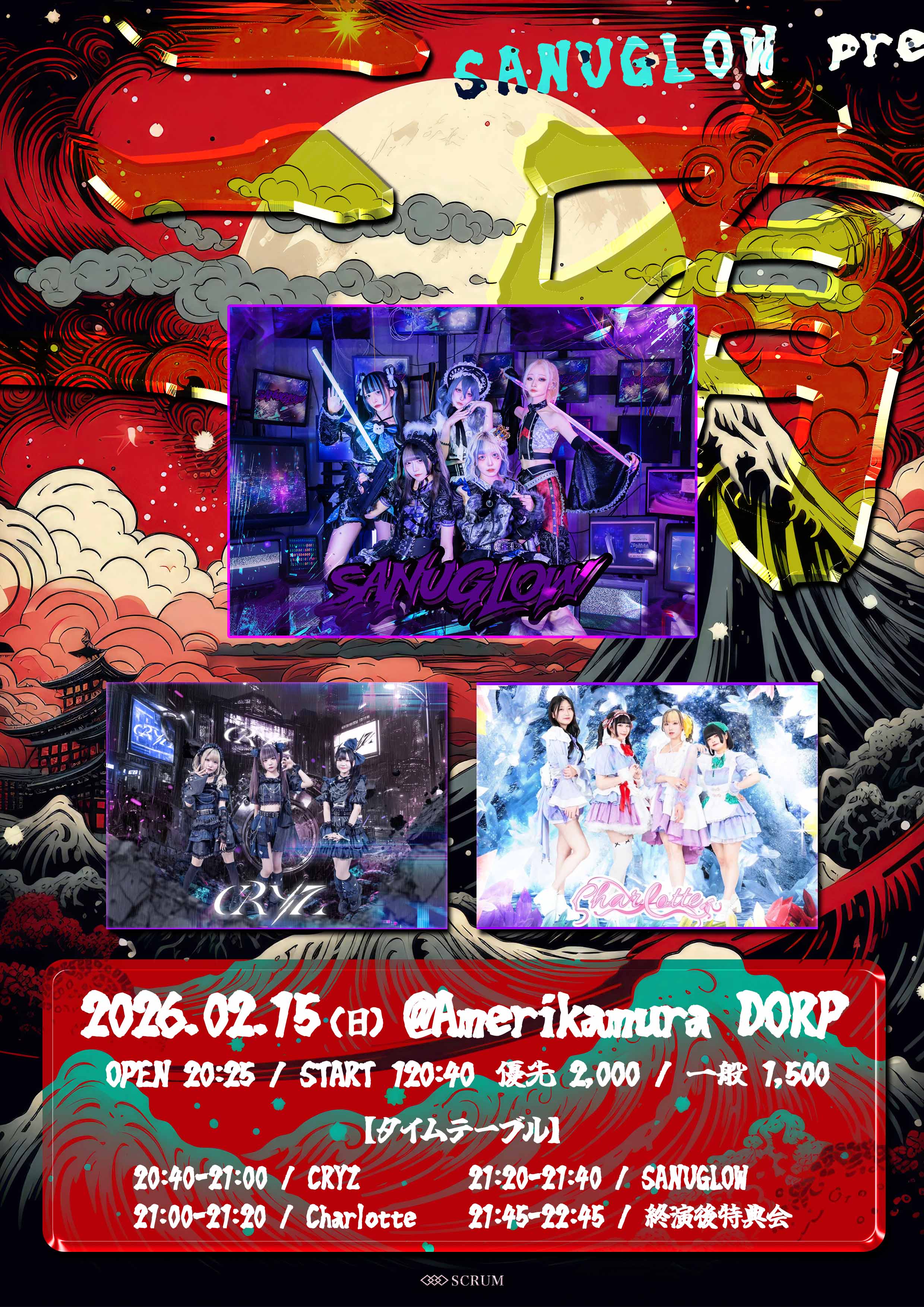 02.15(Sun) SANUGLOW pre 『三有』 アメリカ村DROP X Facebook LINE コピー 2026.02.14 ACT CRYZ / Charlotte / SANUGLOW イベント詳細 アメリカ村 DROP(ドロップ)|大阪 心斎橋アメ村のライブハウスベースオントップグループのライブハウス『アメリカ村 DROP(ドロップ)』大阪アメリカ村の中心地にあるライブハウスです。