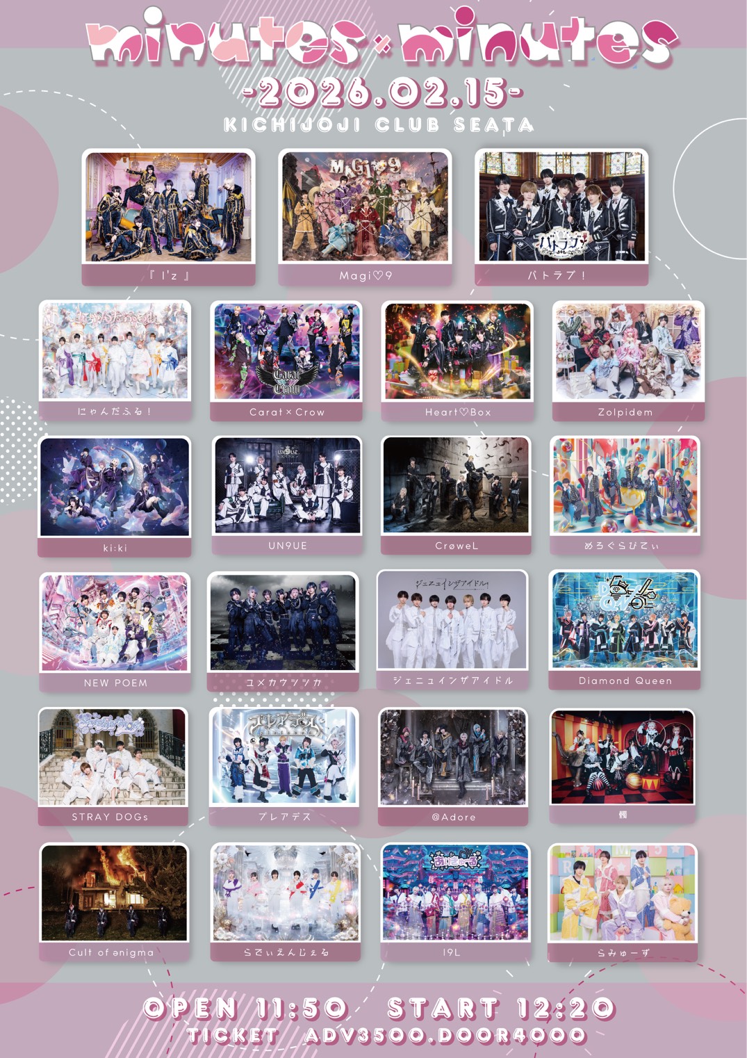 イリーガルポップ / 晴れのち恋 / 幻覚Re:code / Super Ego ジェニュインザアイドル / なぎ / 侵略者りらぐみ / 統弌エゴイズム / WONDER STORY / ヒカリトナリ / ふぉちゅん / らみゅーず / あっとあぐれっしょん L!v!§k / BRAVE TRIGGER / +STARIUM / すぐるん