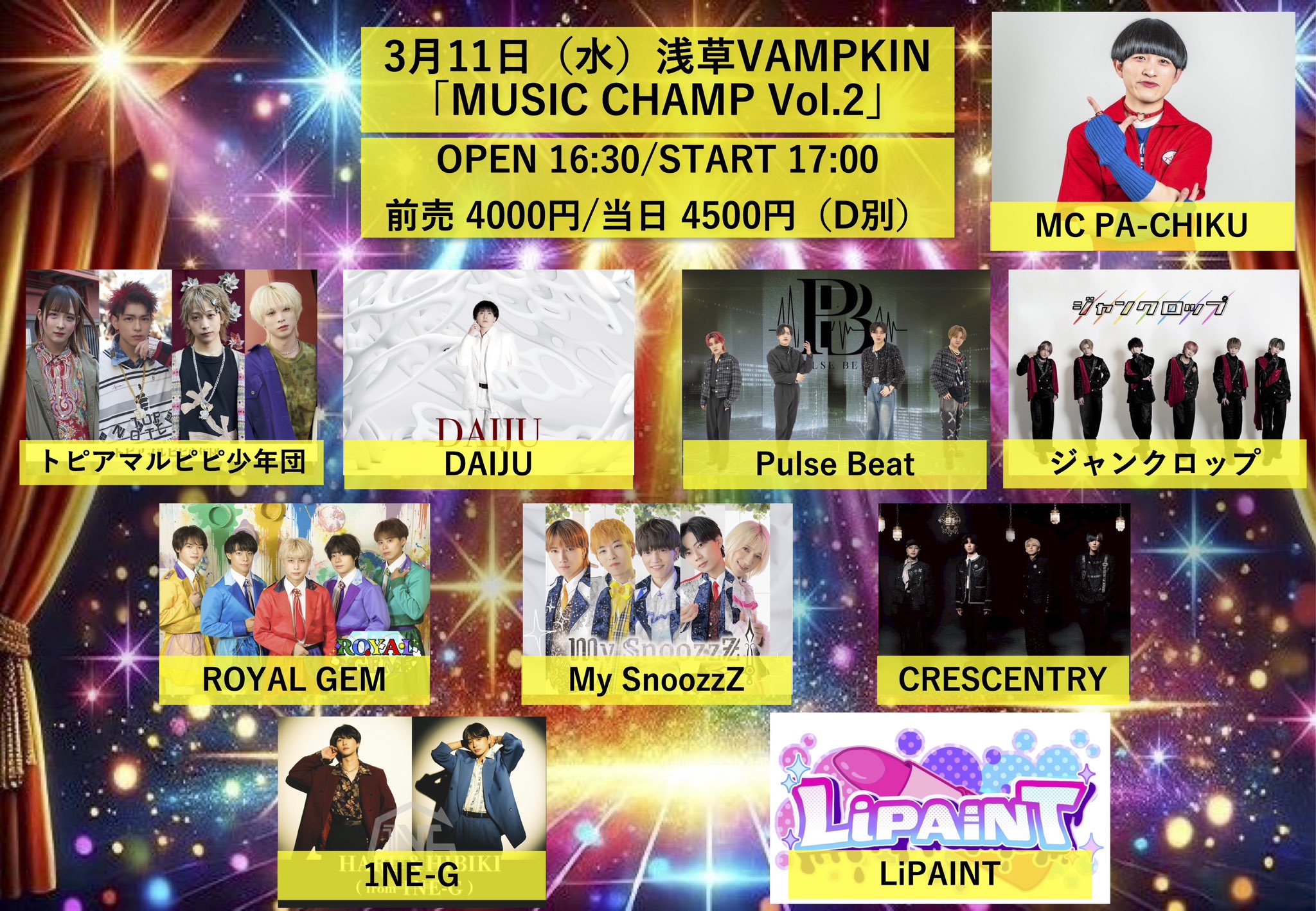 浅草VAMPKINPulse Beat/トピアマルピピ少年団/ジャンクロップ/1NE-G/DAIJU/LiPAINT/My SnoozzZ/ROYAL GEM/CRESCENTRY MC PA-CHIKU