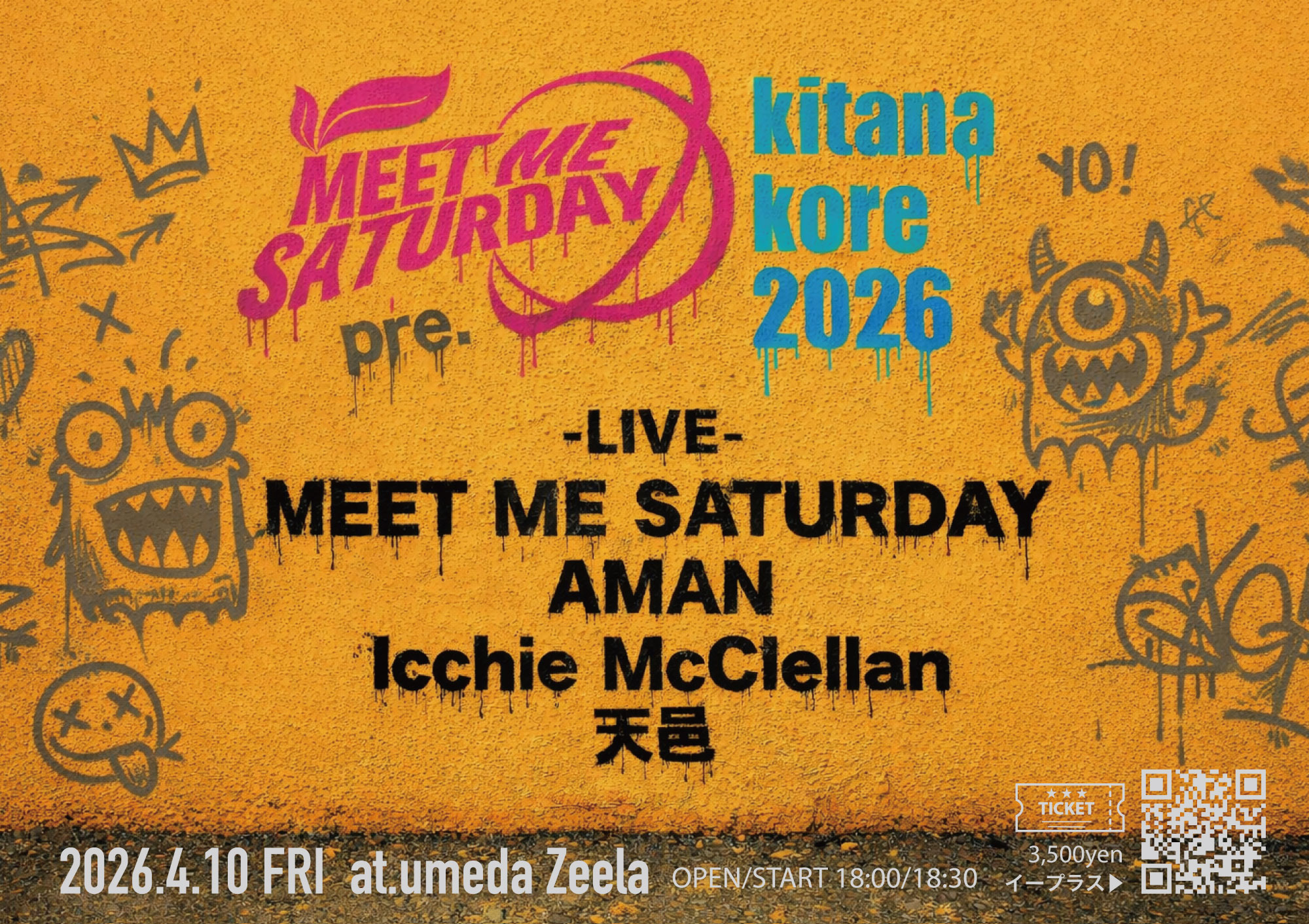 04.10(Fri) MEET ME SATURDAY pre. 「kitana kore2026」 梅田Zeela X Facebook LINE コピー 2026.02.16 ACT MEET ME SATURDAY / AMAN / Icchie McClellan / 天邑 イベント詳細 梅田 Zeela|大阪 梅田のライブハウス大阪梅田のライブハウス Zeela(ジーラ)!ベースオントップグループ8軒目となるライブハウスです。