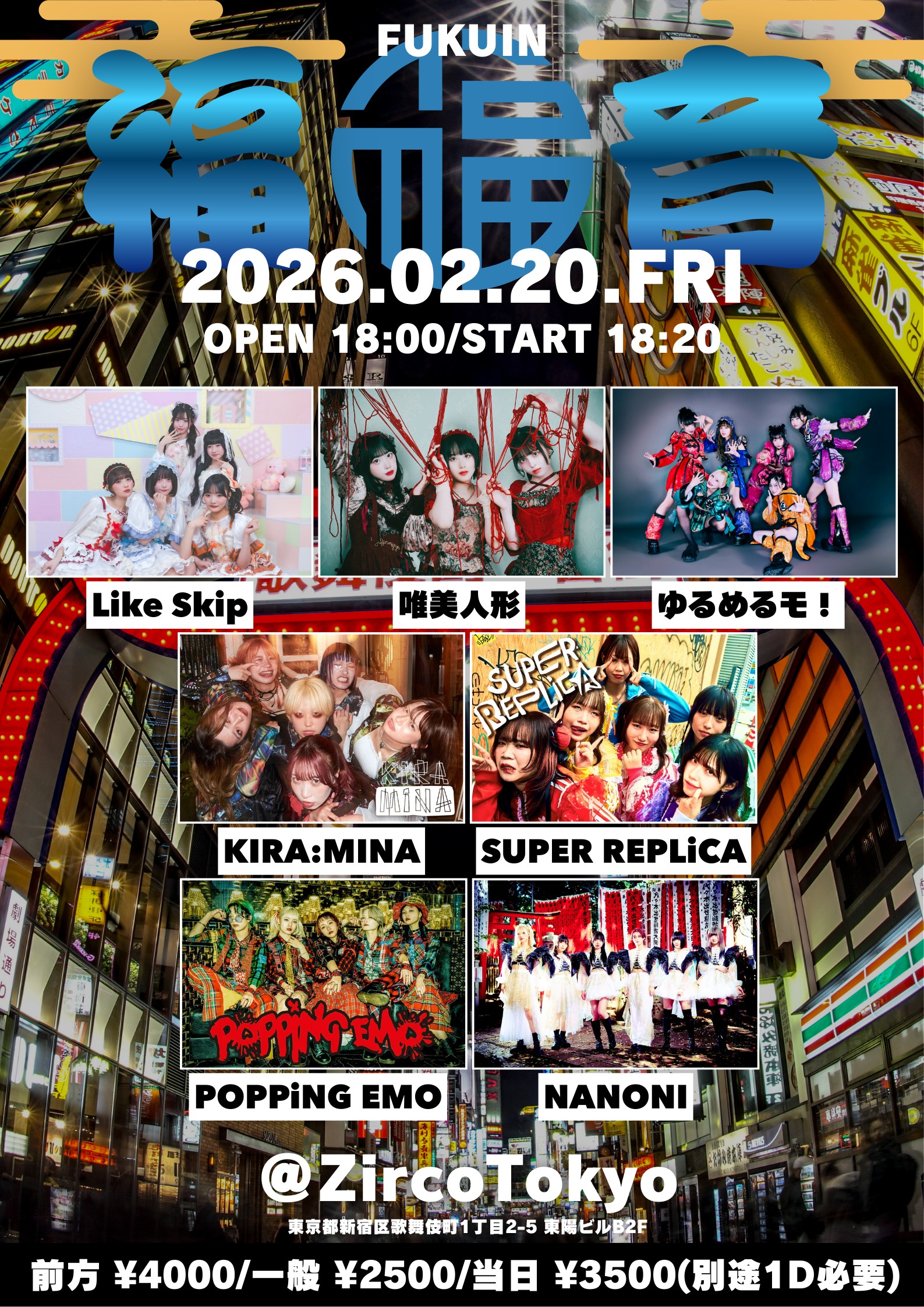 新宿 Zirco TokyoPOPPiNG EMO / SUPER REPLiCA / KIRA:MINA / NANONI / ゆるめるも! / 唯美人形 / Like Skip