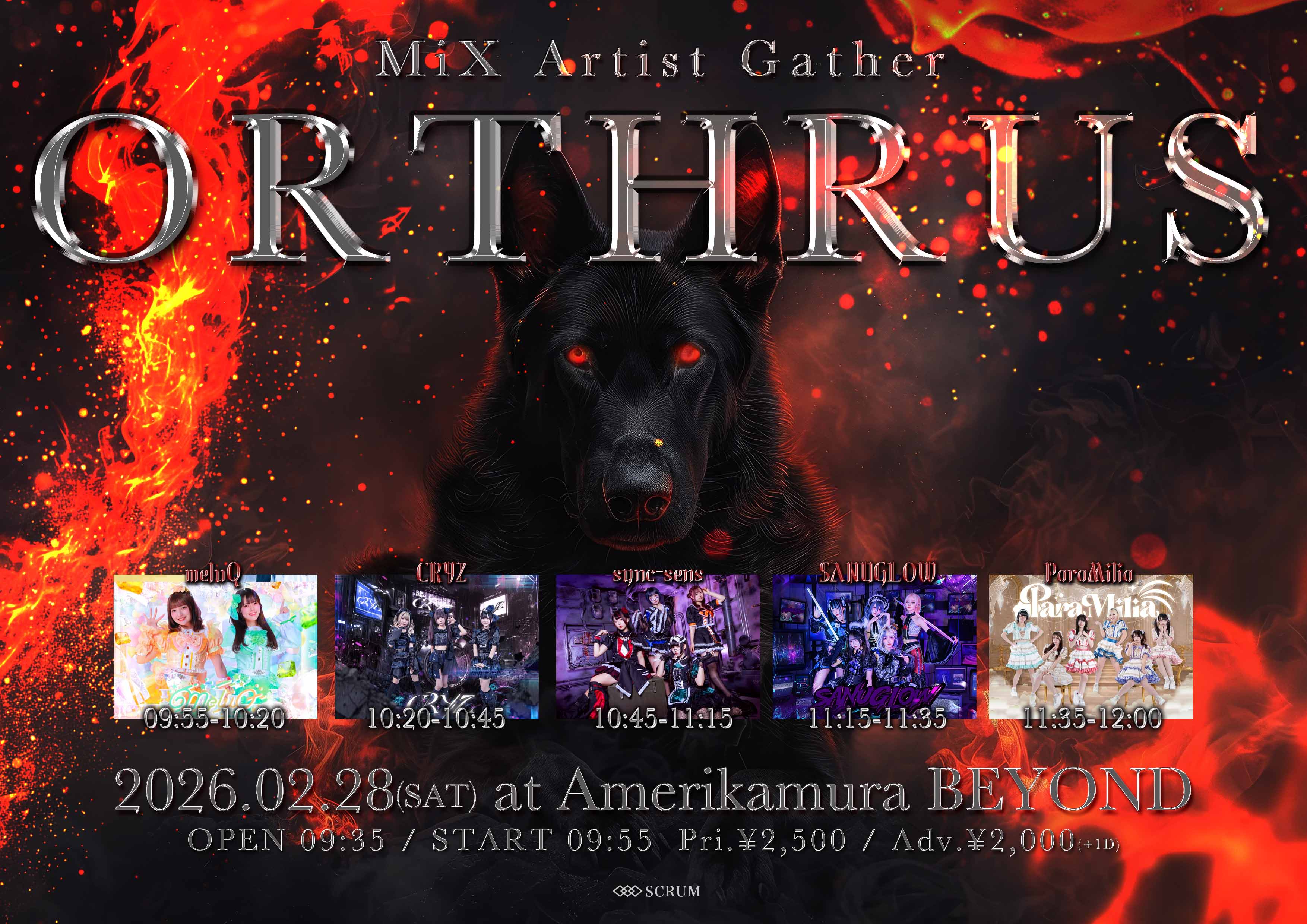 02.28(Sat) ORTHRUS アメリカ村BEYOND X Facebook LINE コピー 2026.02.18 ACT ParaMilia / SANUGLOW / sync-sens / CRYZ / meluQ イベント詳細 アメリカ村 BEYONDベースオントップグループのライブハウス『アメリカ村 BEYOND(ビヨンド)』大阪アメリカ村の中心地にあるライブハウスです。