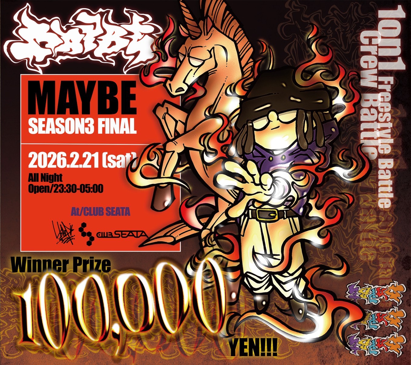【 MC 】 ・ししがみ【 DJ 】 ・KANGTA(Still-G CREW)・$hun Luigi (Vertex/369Records)【 JUDGE 】 ・バファリン (IB6side)・NOBBY (fullahead)・KATSUYA (THE FLOORRIORZ/TAKE NOTIC【 WINNER BOARD LIVE PAINTING 】 ・ASATO (Dip in the Source)・YASS (GRAYSOURCE/Ready to Rock/D.L.i.P.)E)