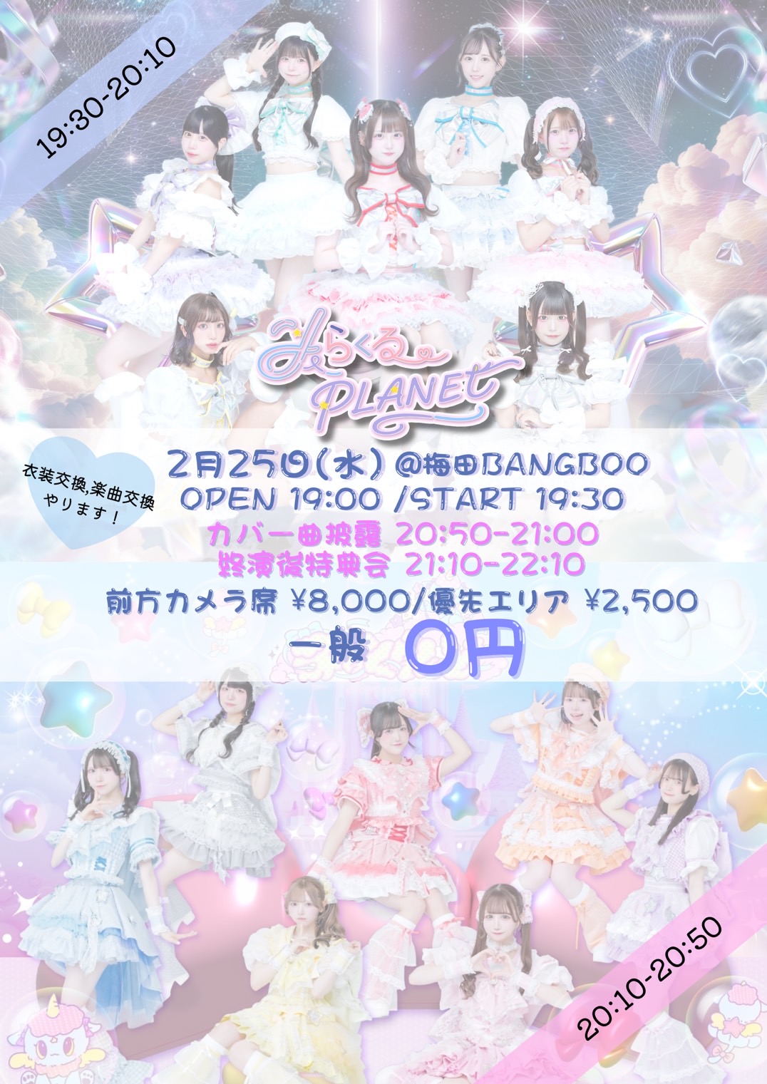 02.25(Wed) みらくるPLANET 梅田BANGBOO X Facebook LINE コピー 2026.02.20 ACT みらくらんど、宇宙∞プラネクシア 衣装交換・楽曲交換あり イベント詳細 梅田 BANGBOOベースオントップグループのライブハウス『梅田 BANGBOO(ウメダバンブー)』大阪梅田にあるライブハウスです。