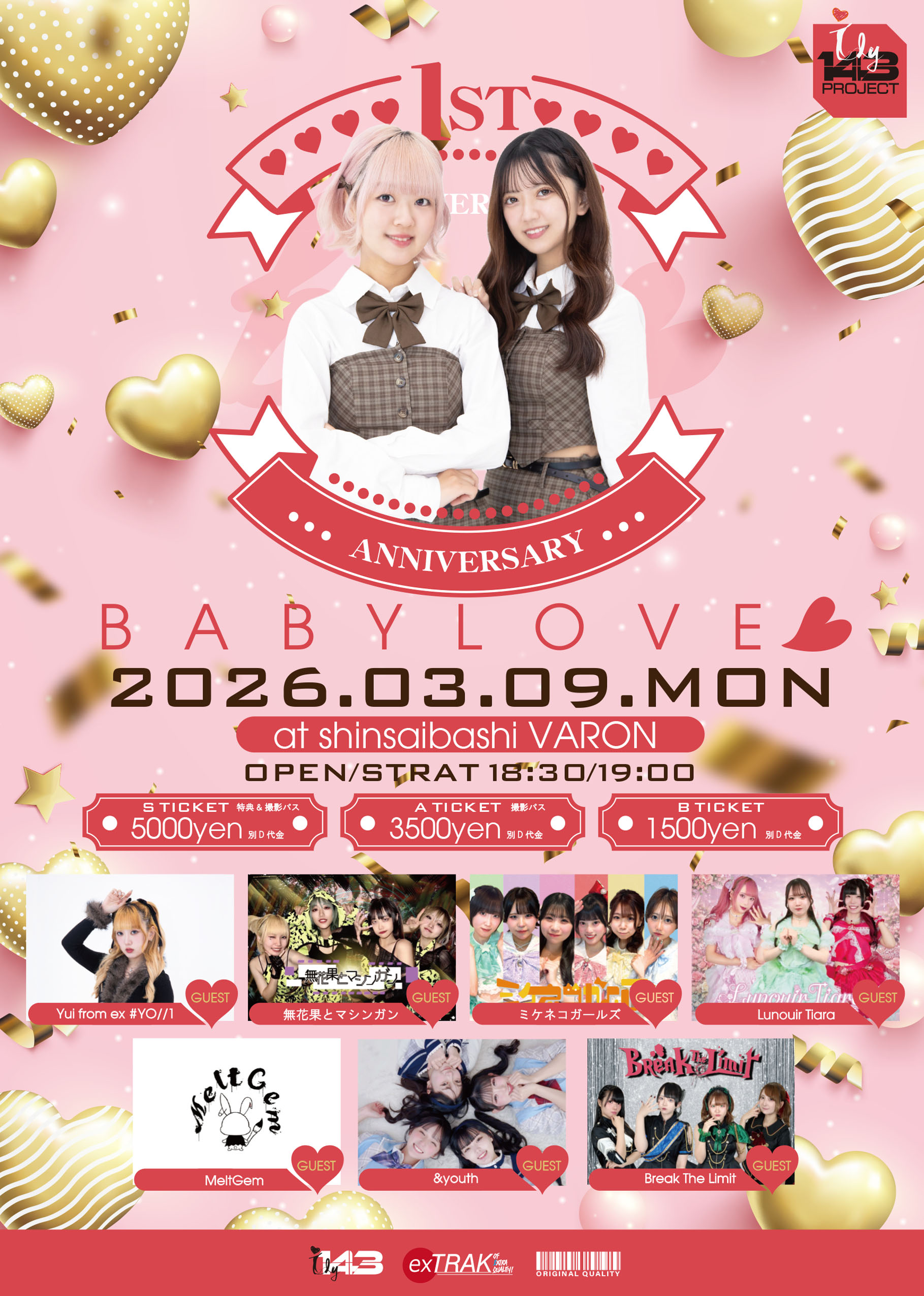 [出演] bae<3 / [GUEST] ミケネコガールズ / 無花果とマシンガン / &youth / MeltGem / Break the Limit / Lunouir Tiara / Yui from ex # YO//1