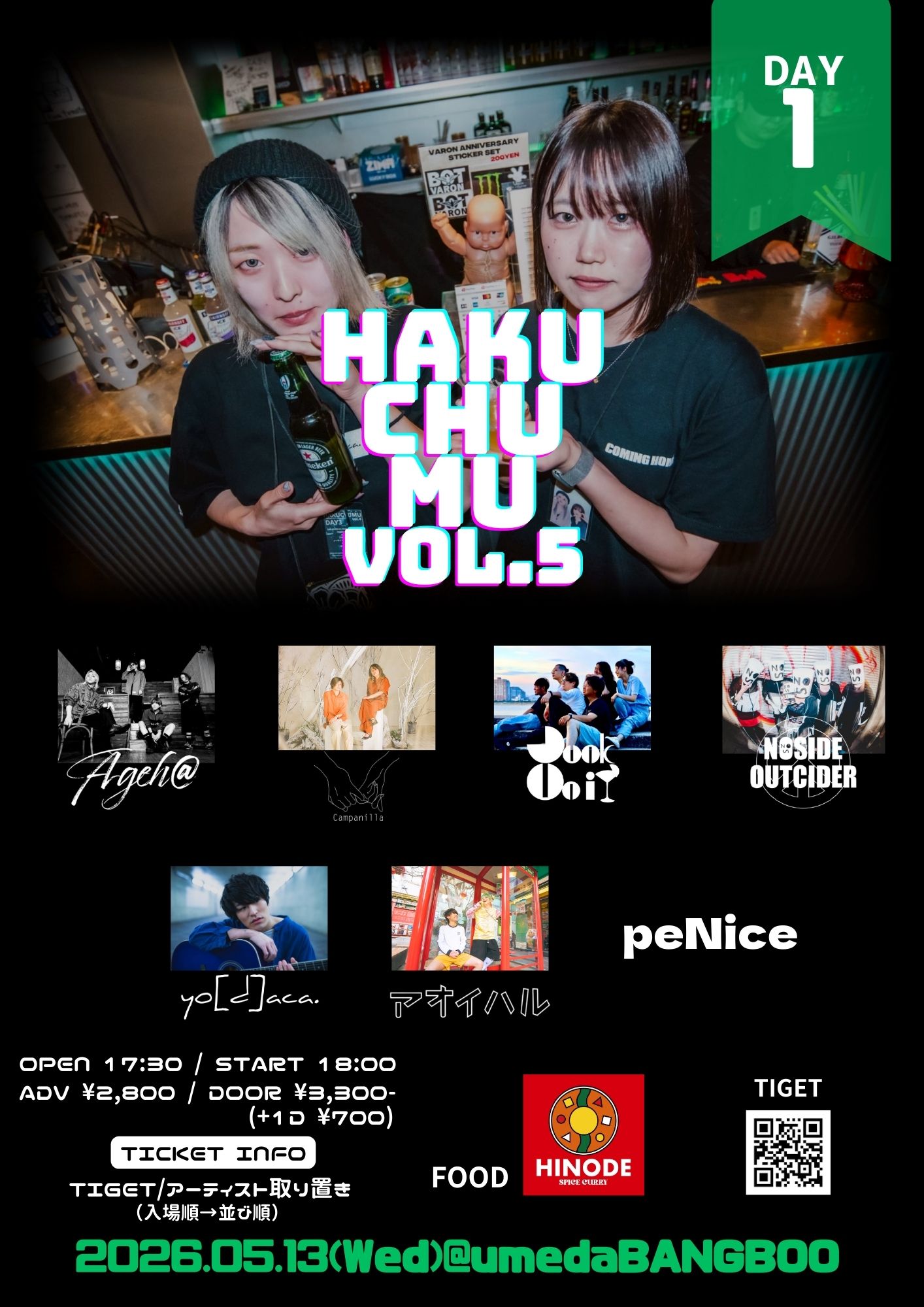 梅田BANGBOOAgeh@ / Campanilla / JunkUnit / yo[d]aca. / アオイハル / ノーサイド・アウトサイダー / peNice [food] HINODE SPICE CURRY