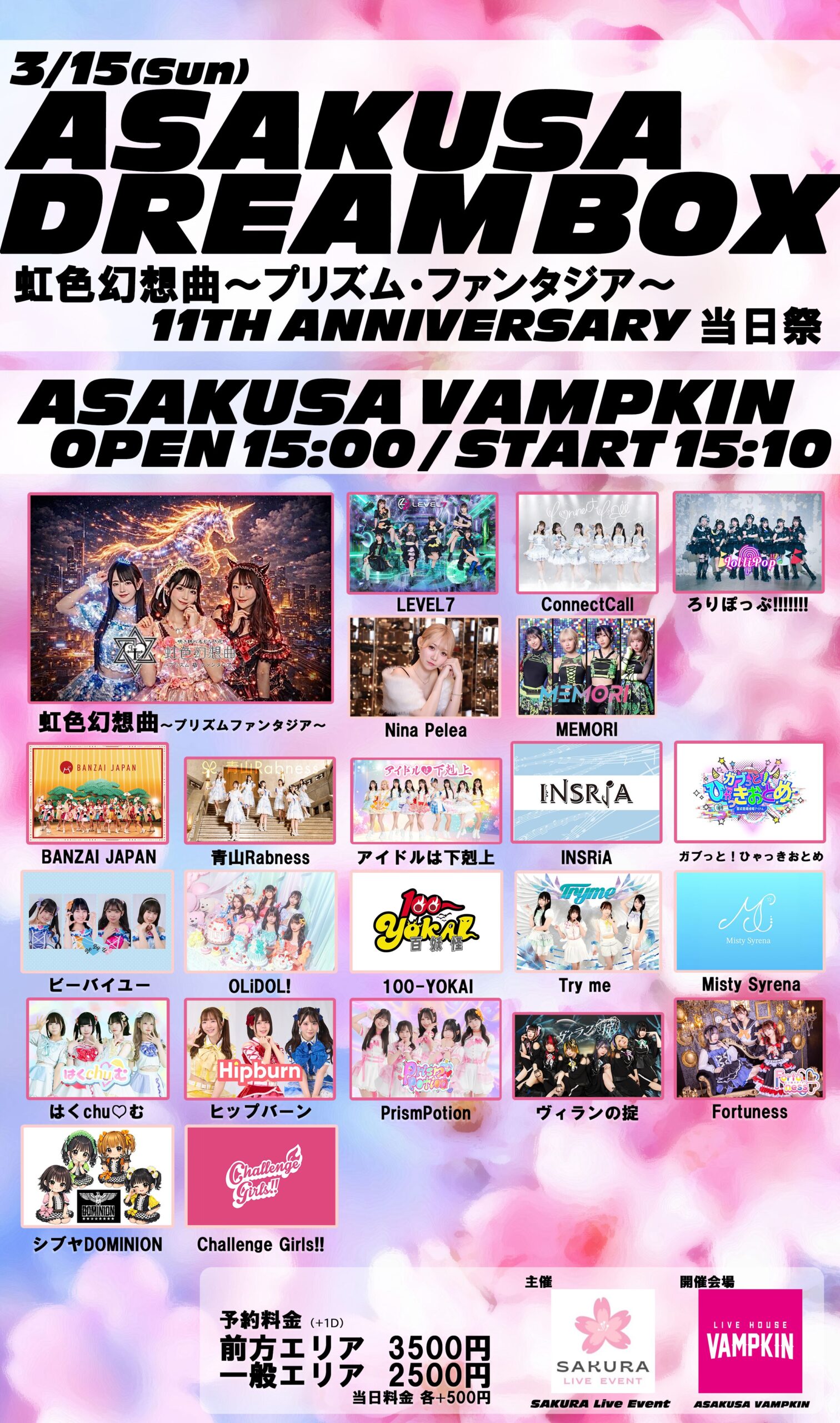虹色幻想曲〜プリズムファンタジア〜/LEVEL7/ConnectCall/ ろりぽっぷ!!!!!!!/Nina Pelea/MEMORI/ BANZAI JAPAN/青山Rabness/アイドルは下剋上/INSRiA/ガブっと!ひゃっきおとめ/ ビーバイユー/OLiDOL!/100-YOKAI/Try me/Misty Syrena/ はくchu♡む/ヒップバーン/PrismPotion/ヴィランの掟/Fortuness/ シブヤDOMINION/Challenge Girls!!