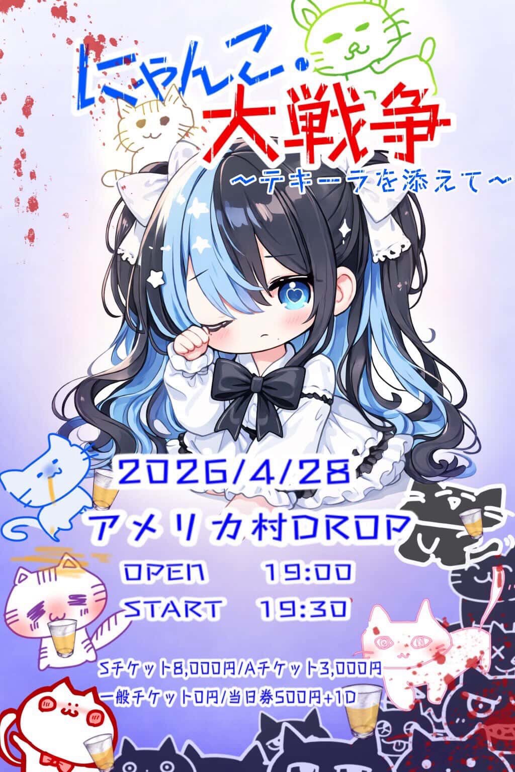 04.28(Tue) にゃんこ大戦争〜テキーラを添えて〜 アメリカ村DROP X Facebook LINE コピー 2026.03.05 ACT I.VILL イベント詳細 アメリカ村 DROP(ドロップ)|大阪 心斎橋アメ村のライブハウスベースオントップグループのライブハウス『アメリカ村 DROP(ドロップ)』大阪アメリカ村の中心地にあるライブハウスです。