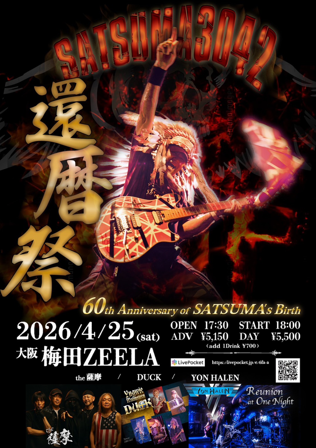 04.25(Sat) SATSUMA 3042 還暦祭 ”60th Anniversary of SATSUMA’s Birth” 梅田Zeela X Facebook LINE コピー 2026.03.05 ACT THE 薩摩 / DUCK / YON HALEN イベント詳細 梅田 Zeela|大阪 梅田のライブハウス大阪梅田のライブハウス Zeela(ジーラ)!ベースオントップグループ8軒目となるライブハウスです。