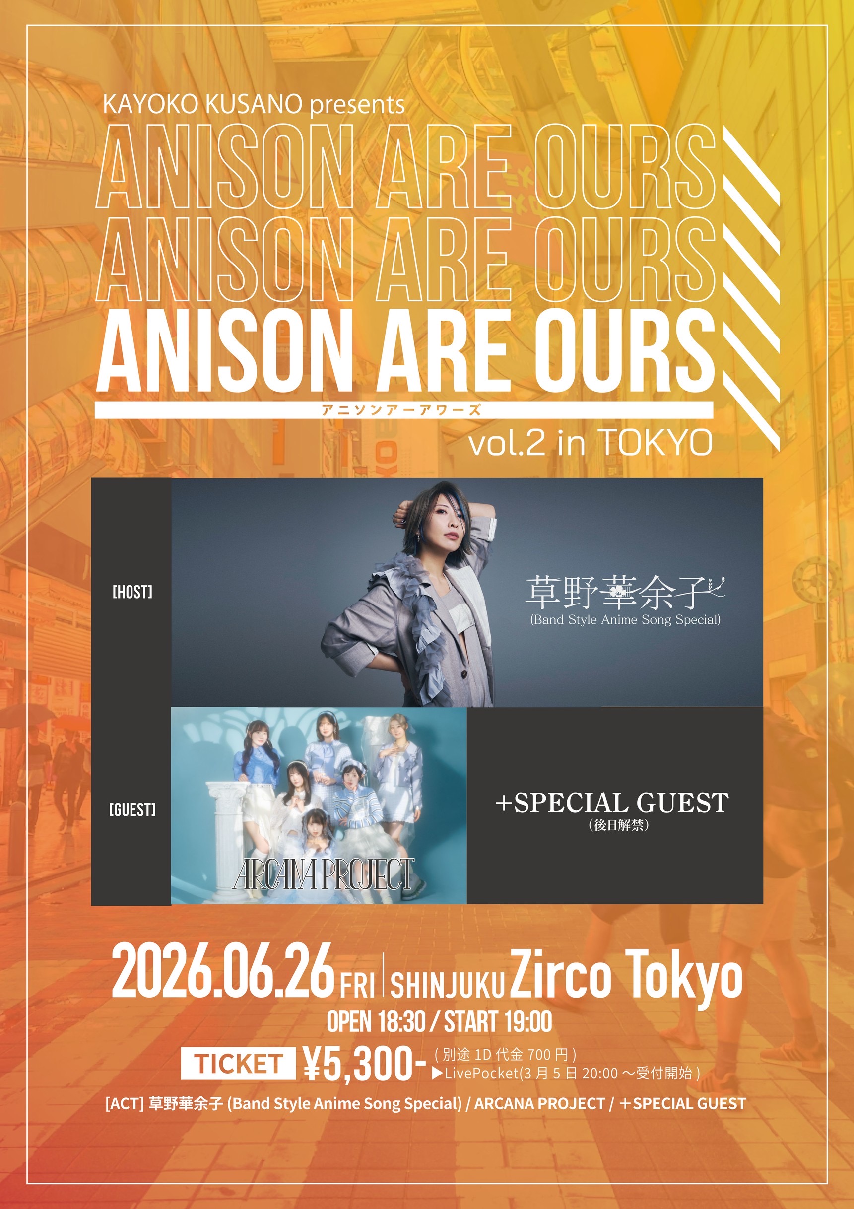 新宿 Zirco Tokyo草野華余子(Band Style Anime Song Special) / ARCANA PROJECT / +Special Guest(後日解禁)