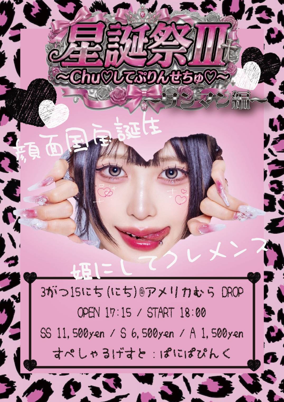 03.15(Sun) 『星誕祭Ⅲ~Chu♡してぷりんせちゅ♡~ワンマン編❤〜』 アメリカ村DROP X Facebook LINE コピー 2026.03.09 ACT AZ-ON 【すぺしゃるげすと】ぱにぱぴんく イベント詳細 アメリカ村 DROP(ドロップ)|大阪 心斎橋アメ村のライブハウスベースオントップグループのライブハウス『アメリカ村 DROP(ドロップ)』大阪アメリカ村の中心地にあるライブハウスです。