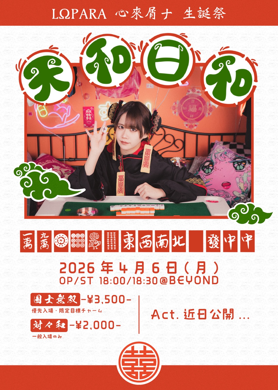 04.06(Mon) LΩPARA 心來屑ナ生誕祭『天和日和』 アメリカ村BEYOND X Facebook LINE コピー 2026.03.09 ACT LΩPARA イベント詳細 アメリカ村 BEYONDベースオントップグループのライブハウス『アメリカ村 BEYOND(ビヨンド)』大阪アメリカ村の中心地にあるライブハウスです。
