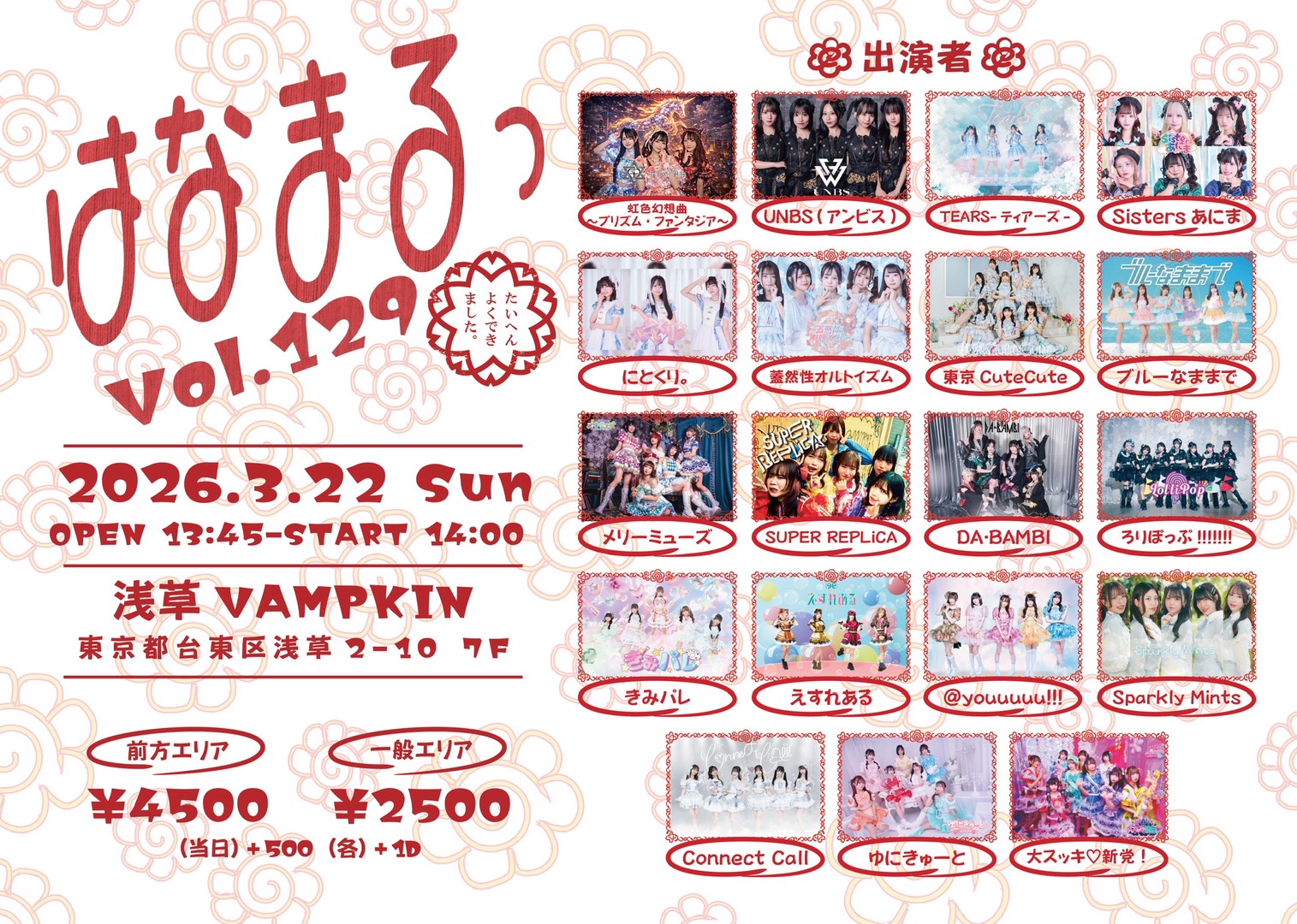 虹色幻想曲〜プリズム・ファンタジア〜/UNBS(アンビス)/TEARS-ティアーズ-/Sistersあにま/にとくり。/蓋然性オルトイズム/東京CuteCute/ブルーなままで/メリーミューズ/SUPER REPLiCA/DA・BAMBI/ろりぽっぷ!!!!!!!/きみパレ/えすれある/@youuuuu!!!/Sparkly Mints/Connect Call/ゆにきゅーと/大スッキ♡新党!