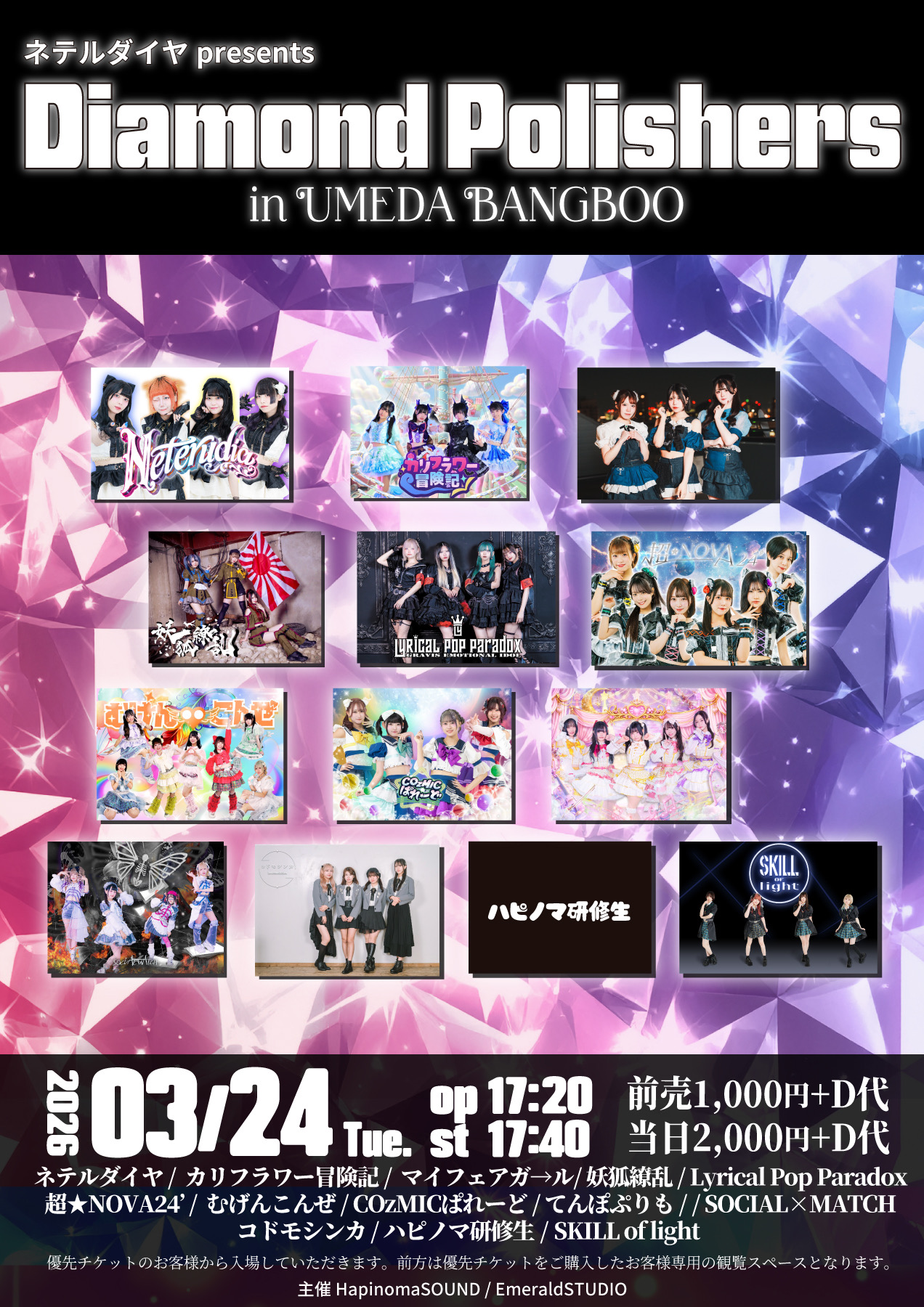 梅田BANGBOOネテルダイヤ、skill of light、social×match、ハピノマ研修生、COzMICぱれーど、てんぽぷりも♪、妖狐繚乱、むげんこんぜ、マイフェアガール、Lyricalpopparadox、カリフラワー冒険記、コドモシンカ、超★NOVA24、