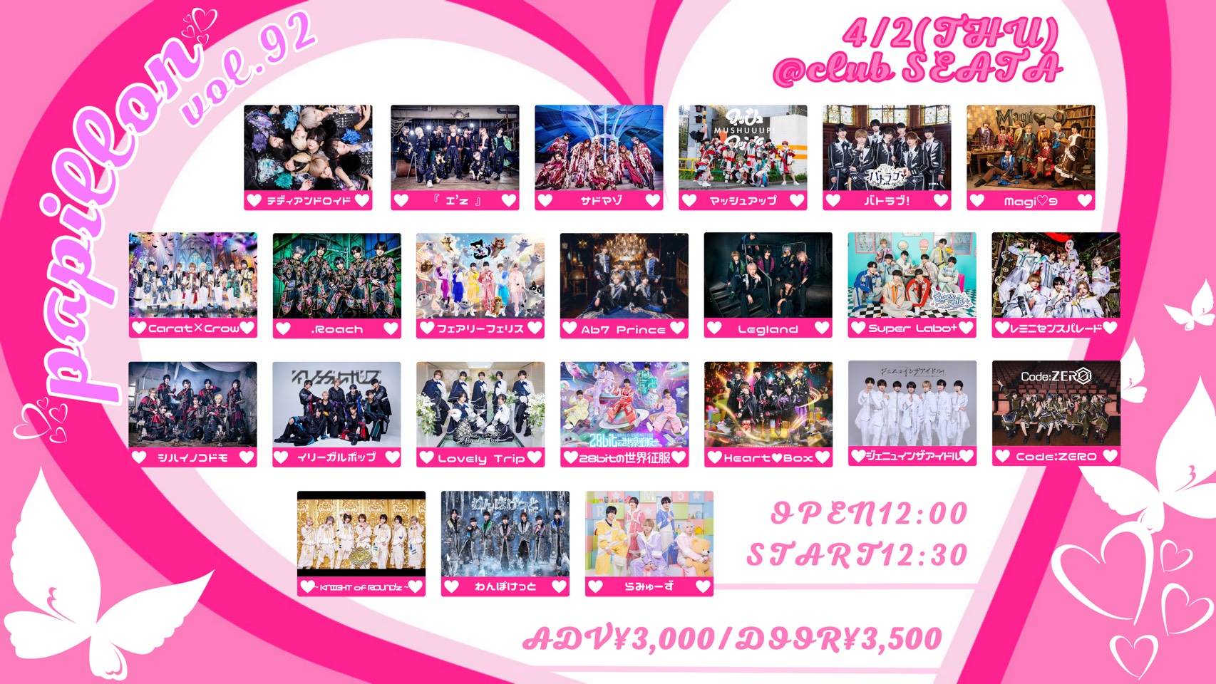 04.02(Thu) Papillon vol.92 吉祥寺 CLUB SEATA X Facebook LINE コピー 2026.03.21 ACT Papillon vol.92 イベント詳細 吉祥寺CLUB SEATA|東京 吉祥寺のライブハウス吉祥寺駅から徒歩5分、西東京最大級のライブハウス/CLUB!誰もが想像し得なかった吉祥寺という場所に新たなプレイスポットが誕生!都内のライブシーン・クラブシーンに新たな風を創るCLUB SEATA
