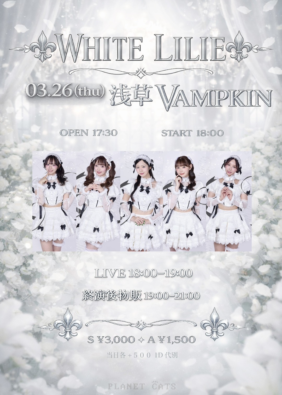 03.26(Thu) WHITE LILIE 浅草VAMPKIN X Facebook LINE コピー 2026.03.25 ACT KITTIES イベント詳細 浅草 VAMPKINベースオントップグループのライブハウス『浅草 VAMPKIN(アサクサ ヴァンプキン)』東京浅草にあるライブハウスです。