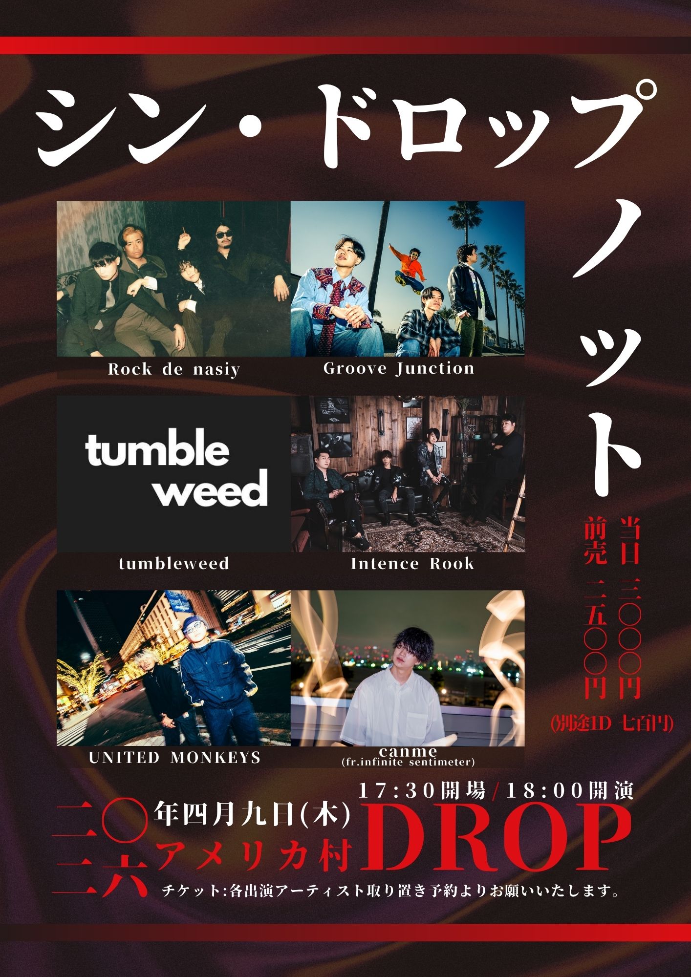 アメリカ村DROPRock de nasiy / UNITED MONKEYS / tumbleweed / Groove Junction / Intence Rook /canme (fr.infinite sentimeter)
